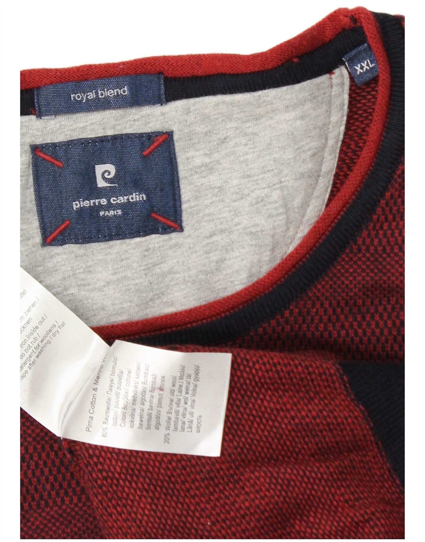 - Описание ИИ: Мужской джемпер с круглым вырезом Pierre Cardin выполнен из удобного трикотажа из смеси хлопка и шерсти. Ткань насыщенного бордового цвета имеет тонкое фактурное переплетение. Имеет классический круглый вырез с контрастной темно-синей отделкой. Длинные рукава и стандартный крой обеспечивают комфортное ношение. Ребристые манжеты и подол также украшены темно-синими акцентами. Небольшая деталь с фирменным логотипом завершает этот вневременной пуловер.