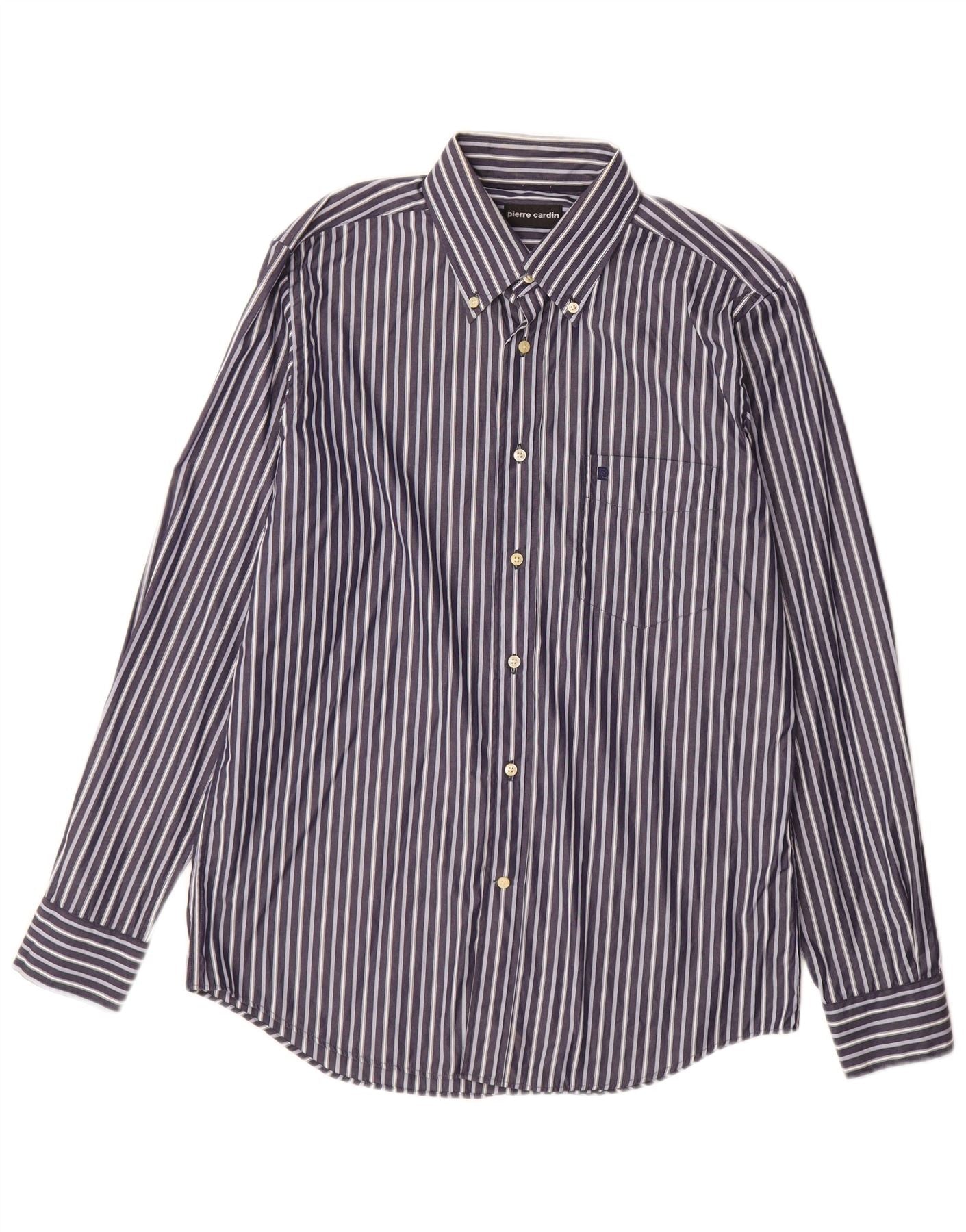 Мужская рубашка PIERRE CARDIN, размер 39, средний синий в тонкую полоску, хлопок