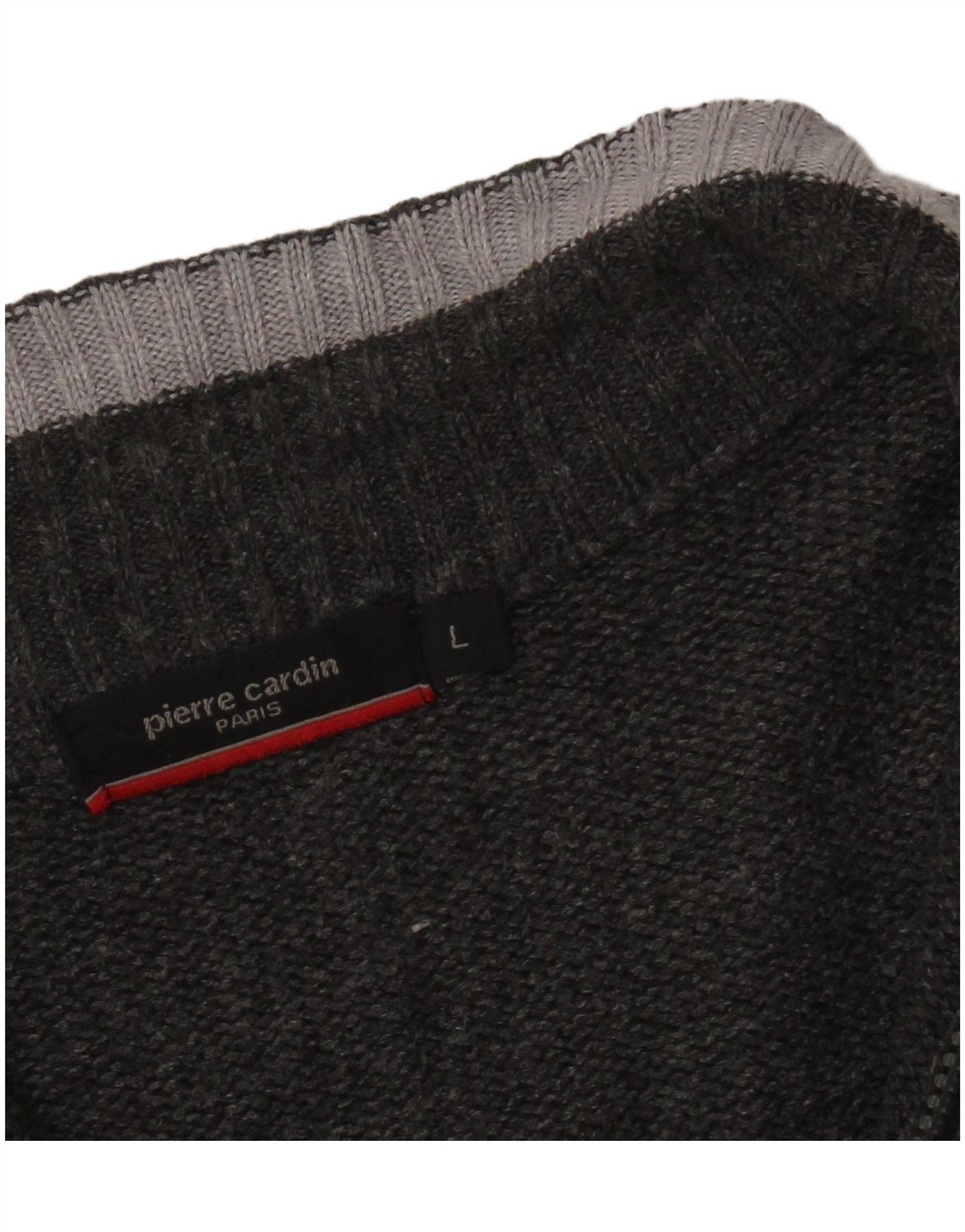 Мужской джемпер с воротником на молнии PIERRE CARDIN, большой серый акрил в полоску