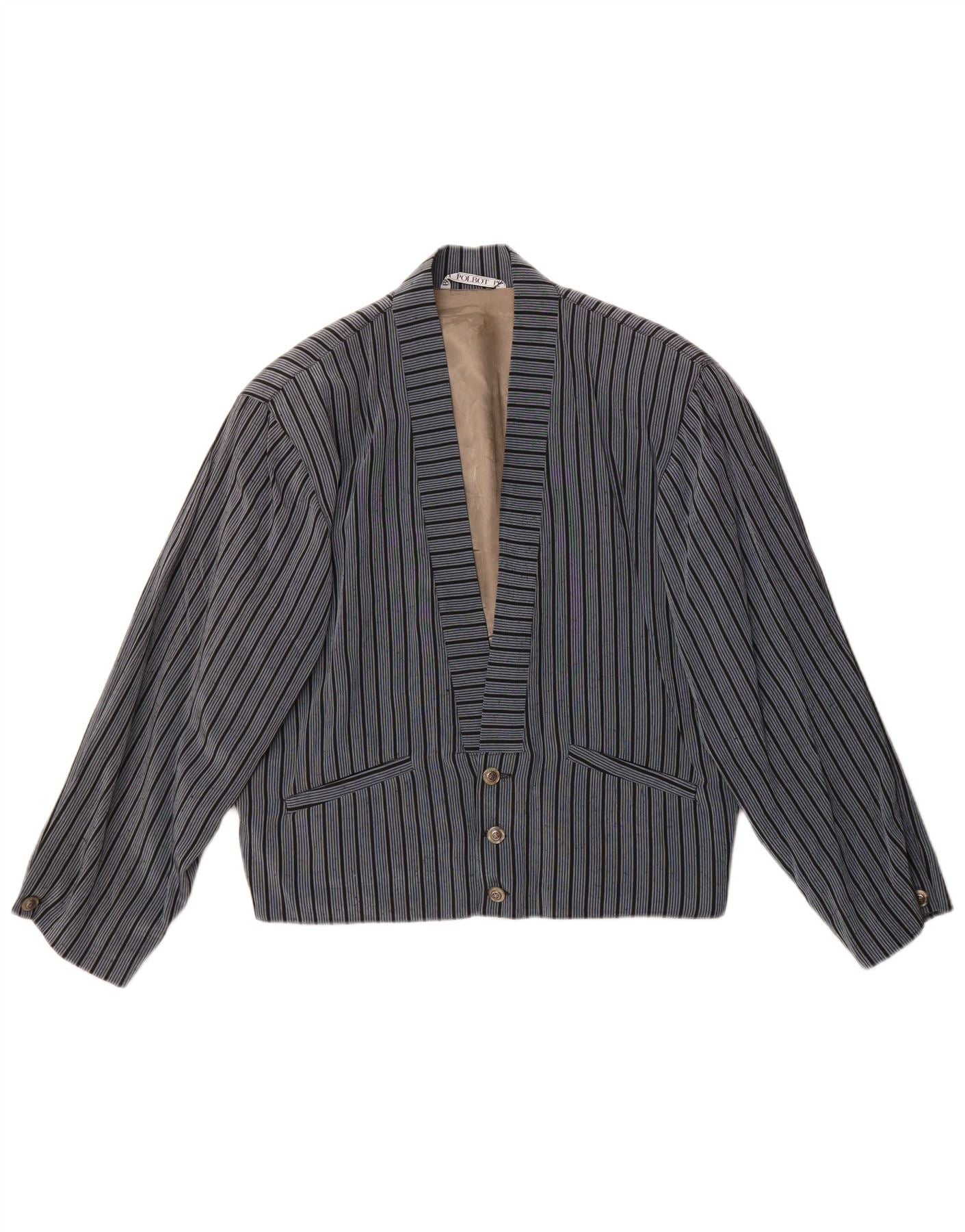 - Описание ИИ: Женский пиджак Polbot изготовлен из тканого материала темно-синего цвета с полосатым узором. Имеет воротник с воротником и длинные рукава. Классический крой обеспечивает удобный силуэт. Застежка на одну пуговицу и передние карманы дополняют классическую деталь. Полосатый дизайн создает изящную узорчатую отделку, идеально подходящую для изысканного образа.