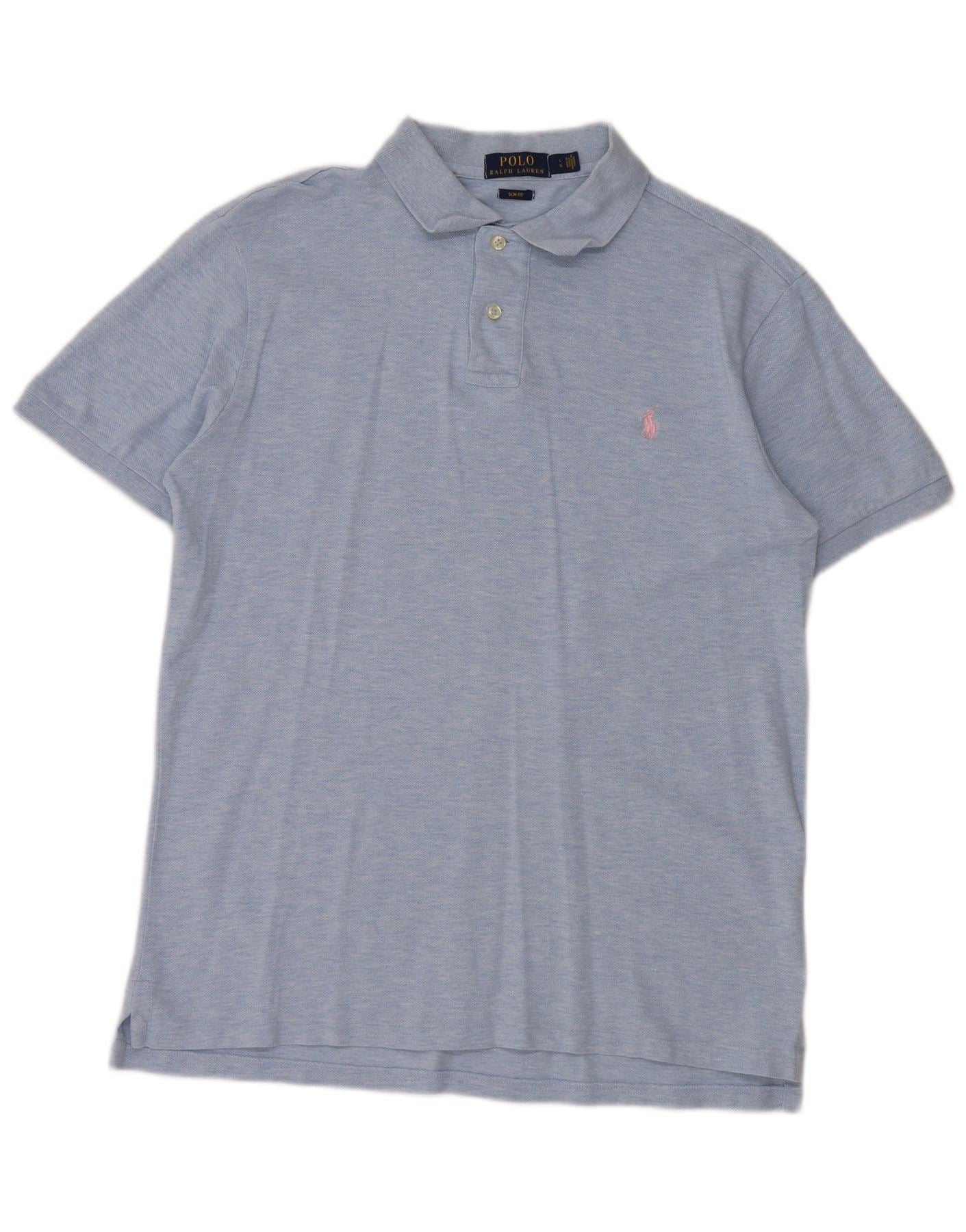 POLO RALPH LAUREN Мужская рубашка поло приталенного кроя, большая синяя хлопковая рубашка в крапинку