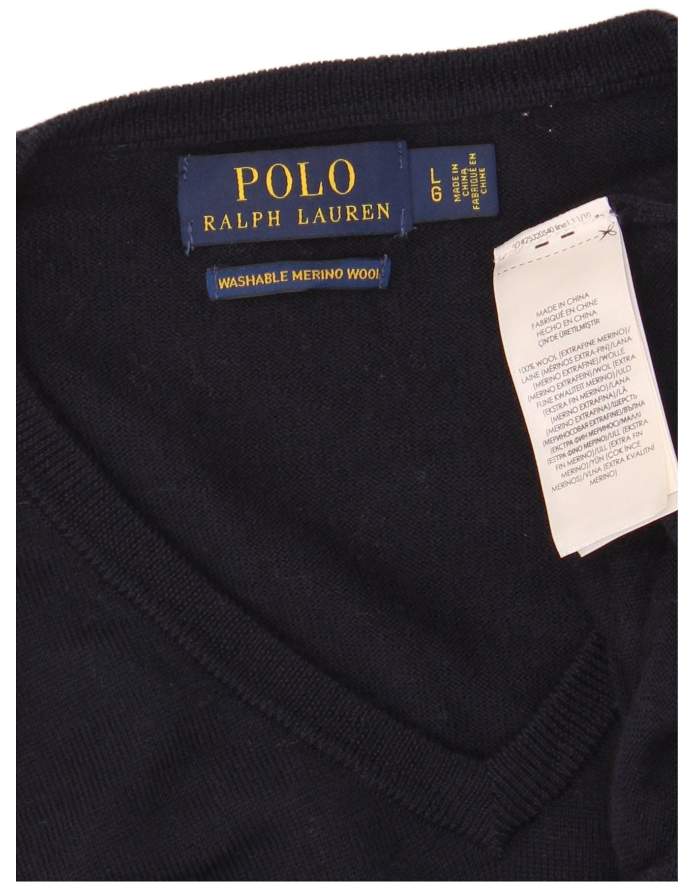 Мужской джемпер с v-образным вырезом Polo Ralph Lauren, большой темно-синий из мериносовой шерсти