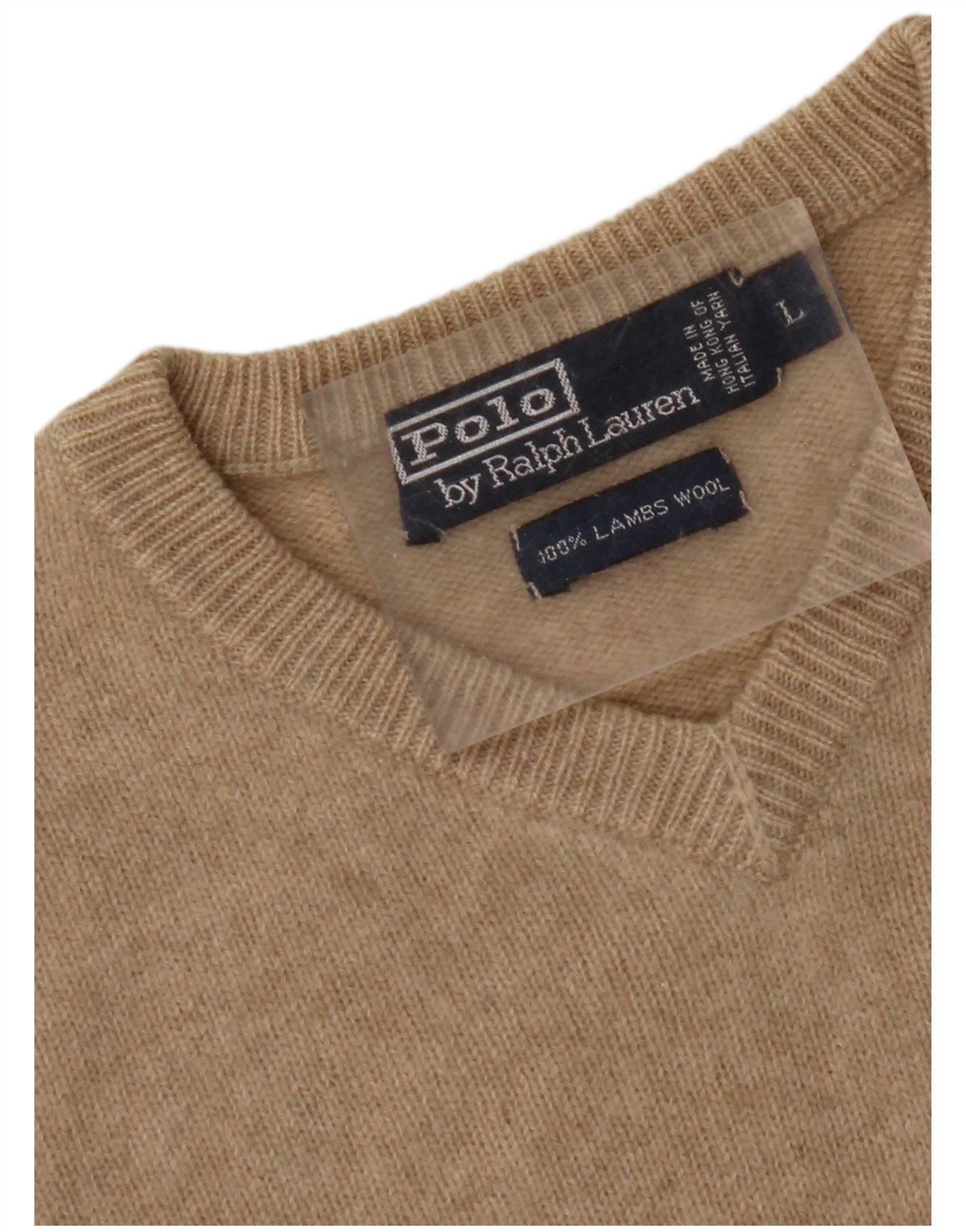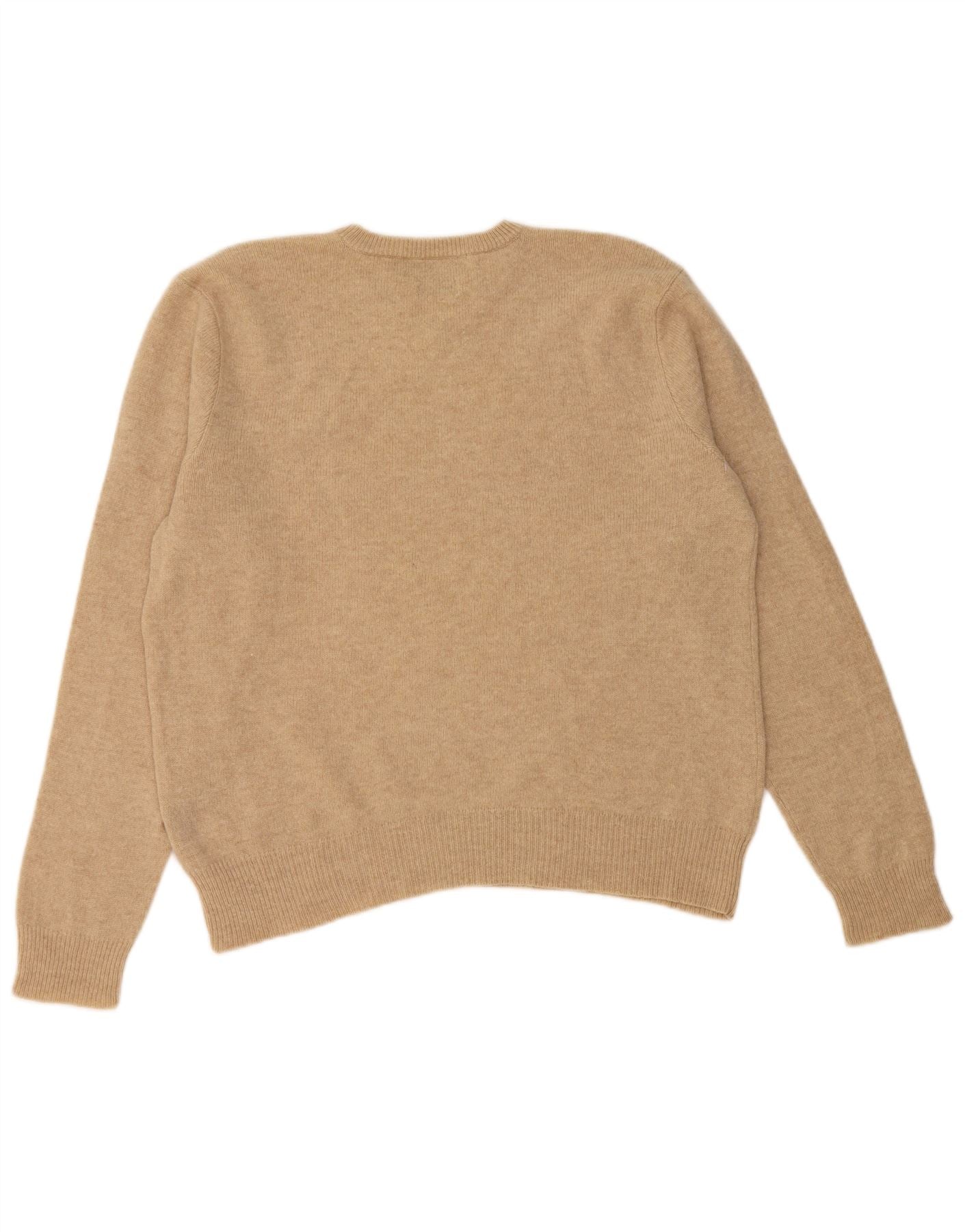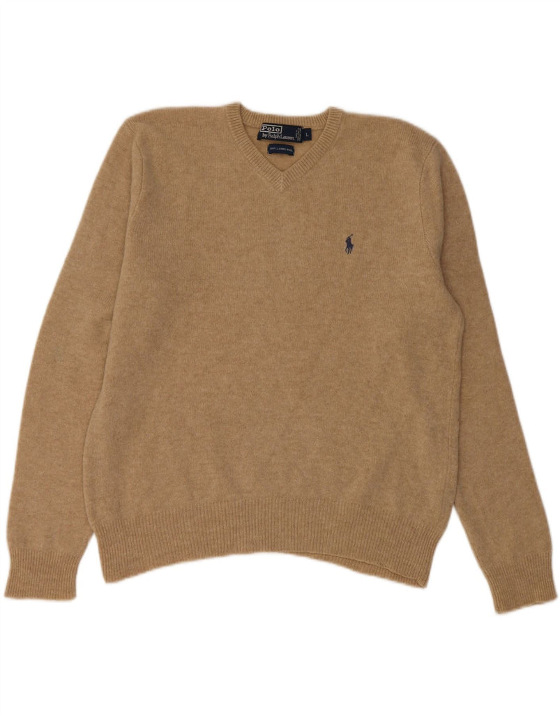 Женский джемпер с v-образным вырезом POLO RALPH LAUREN, Великобритания, 16, большой, бежевый, из овечьей шерсти