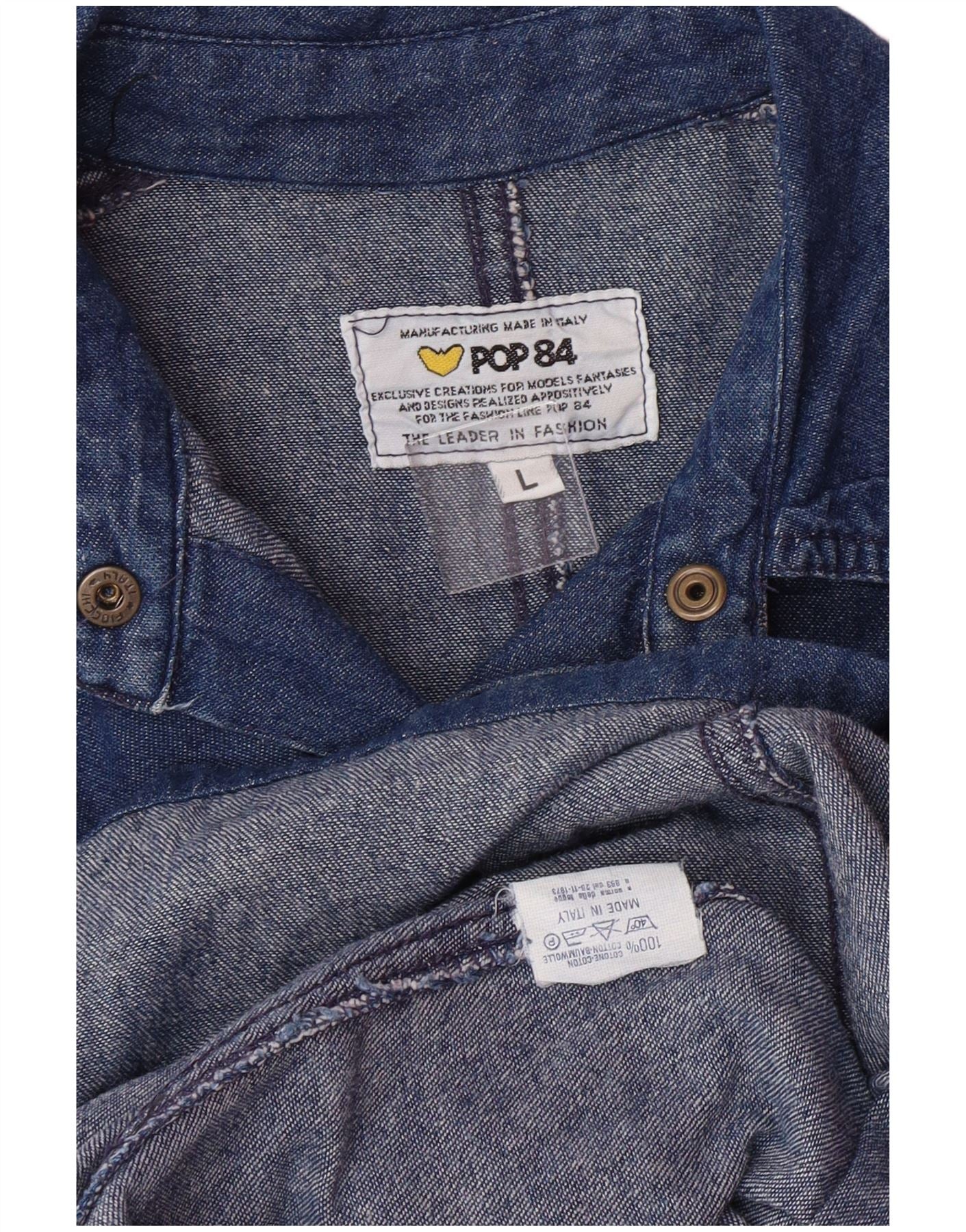 Женское джинсовое платье-рубашка POP 84 в стиле милитари, Великобритания 16, большой синий хлопок