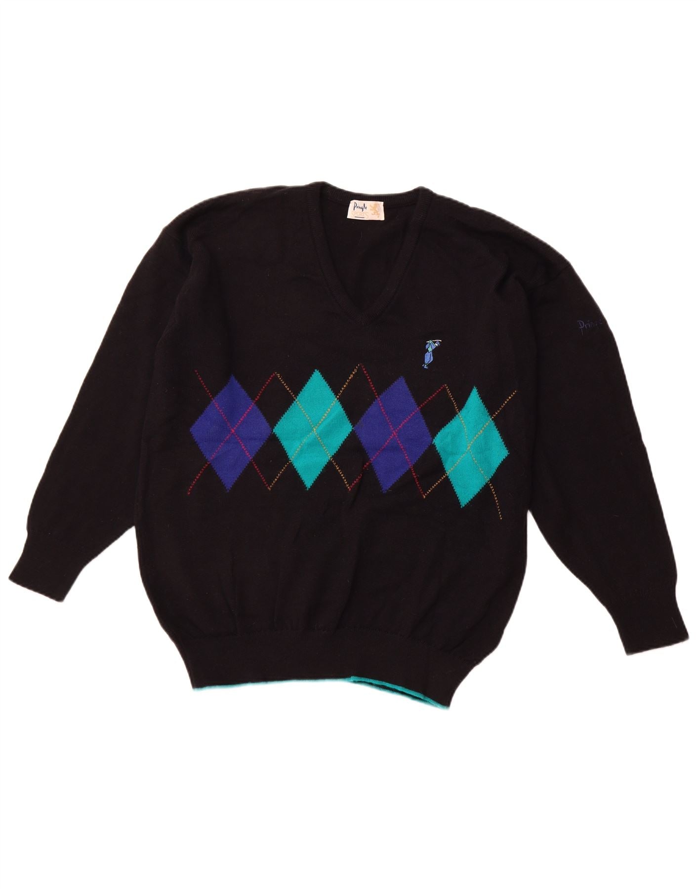 PRINGLE Мужской джемпер с v-образным вырезом XL, черный аргайл/бриллиантовый акрил