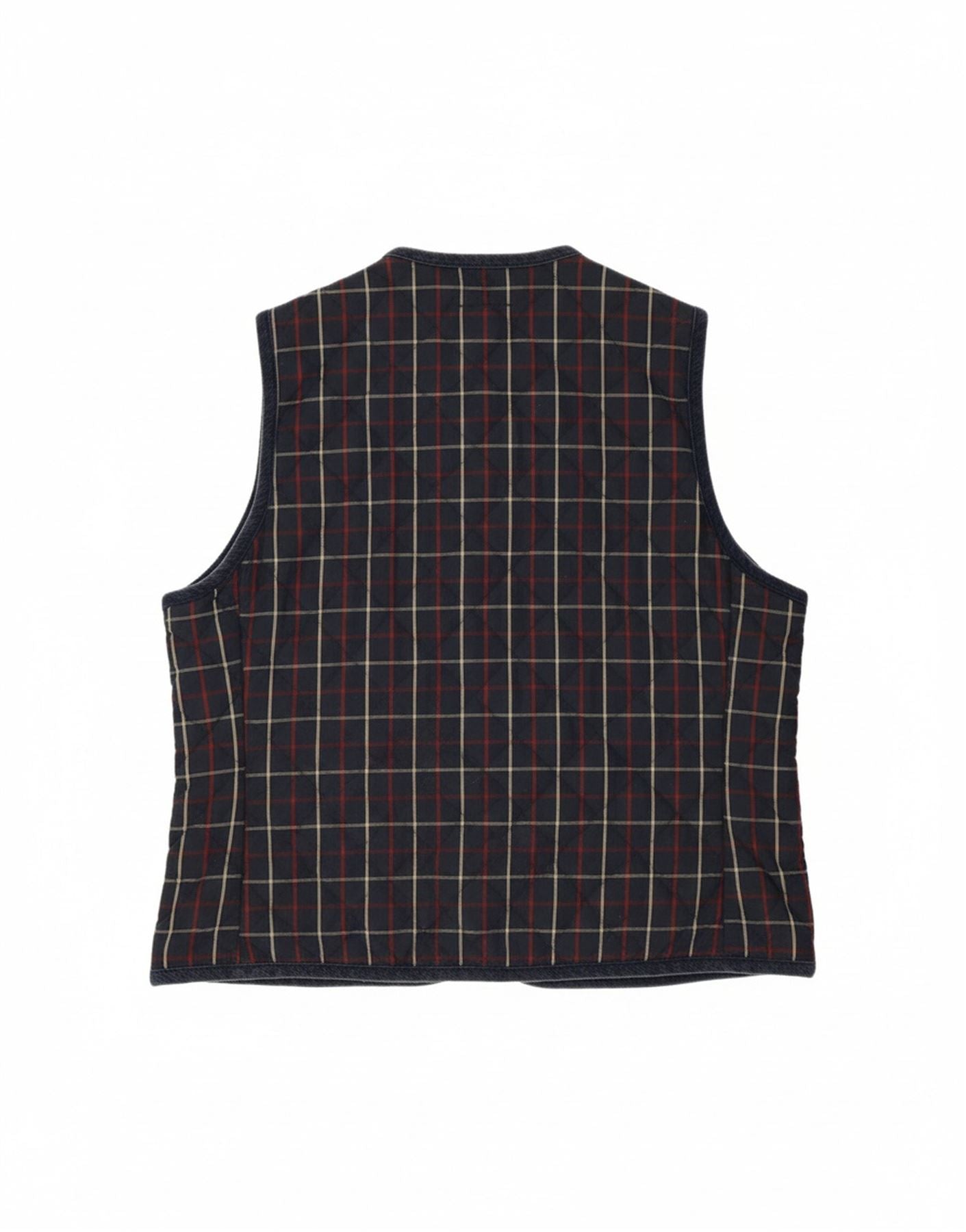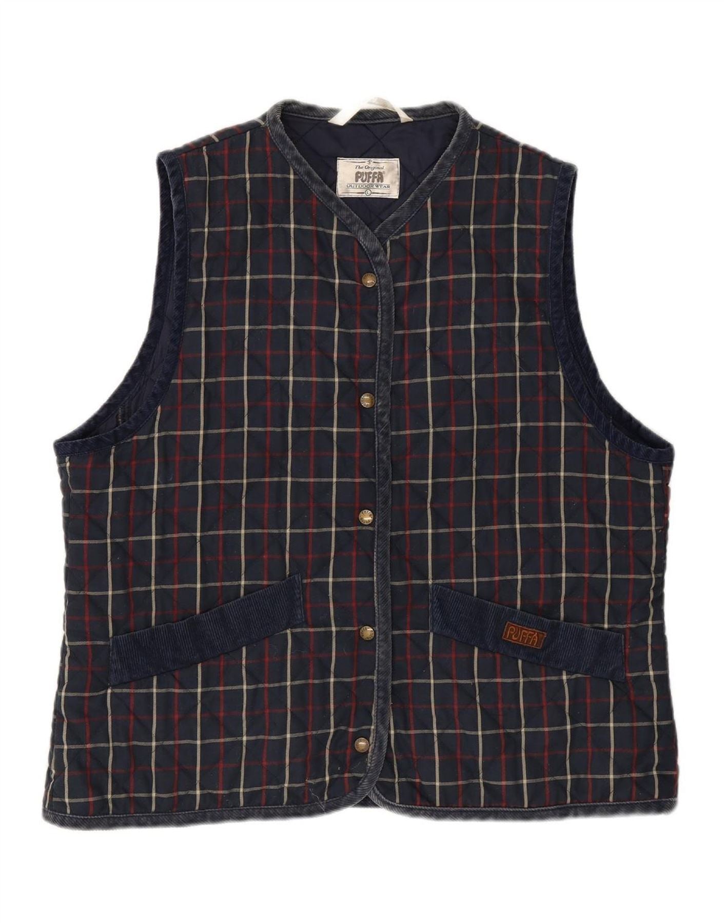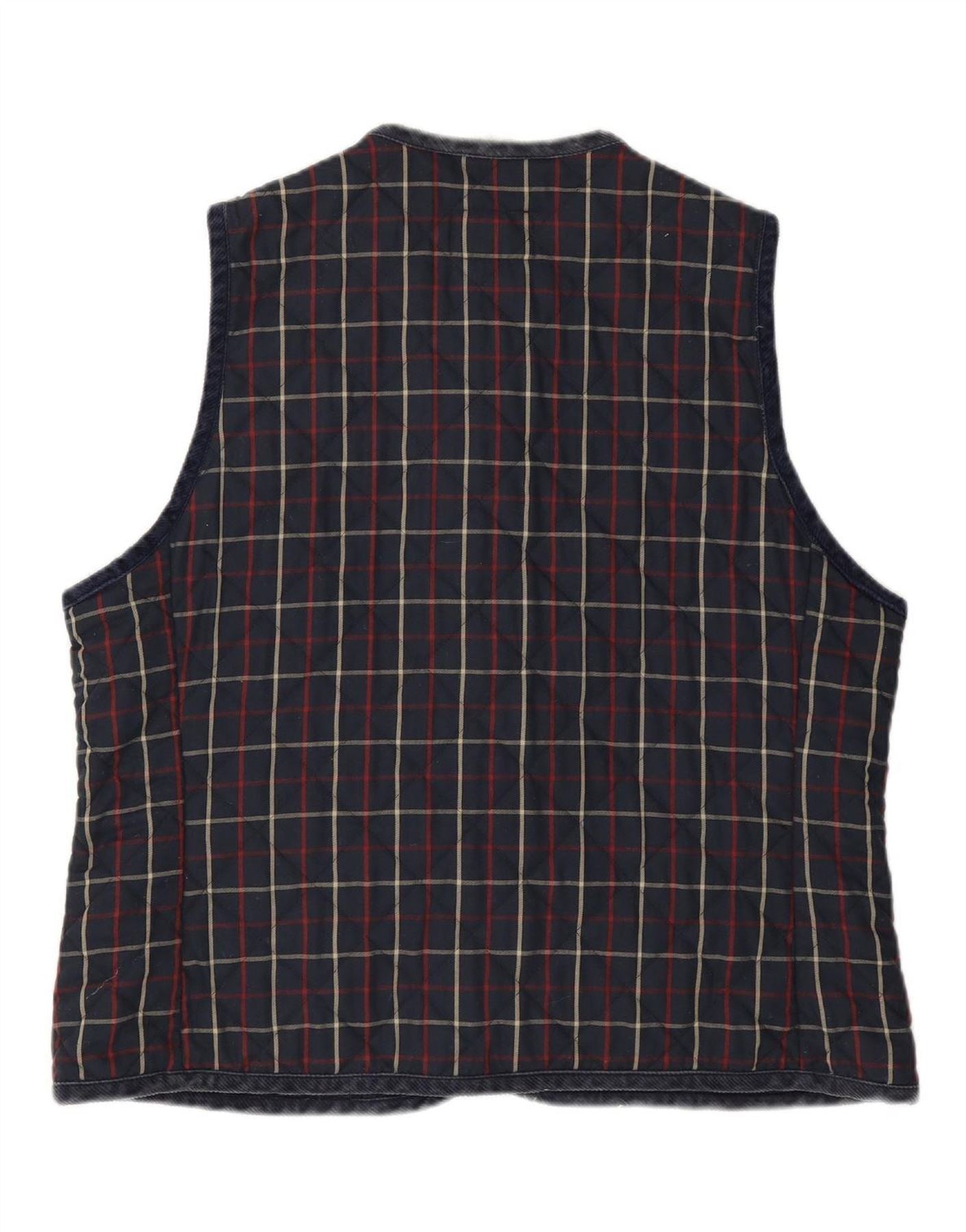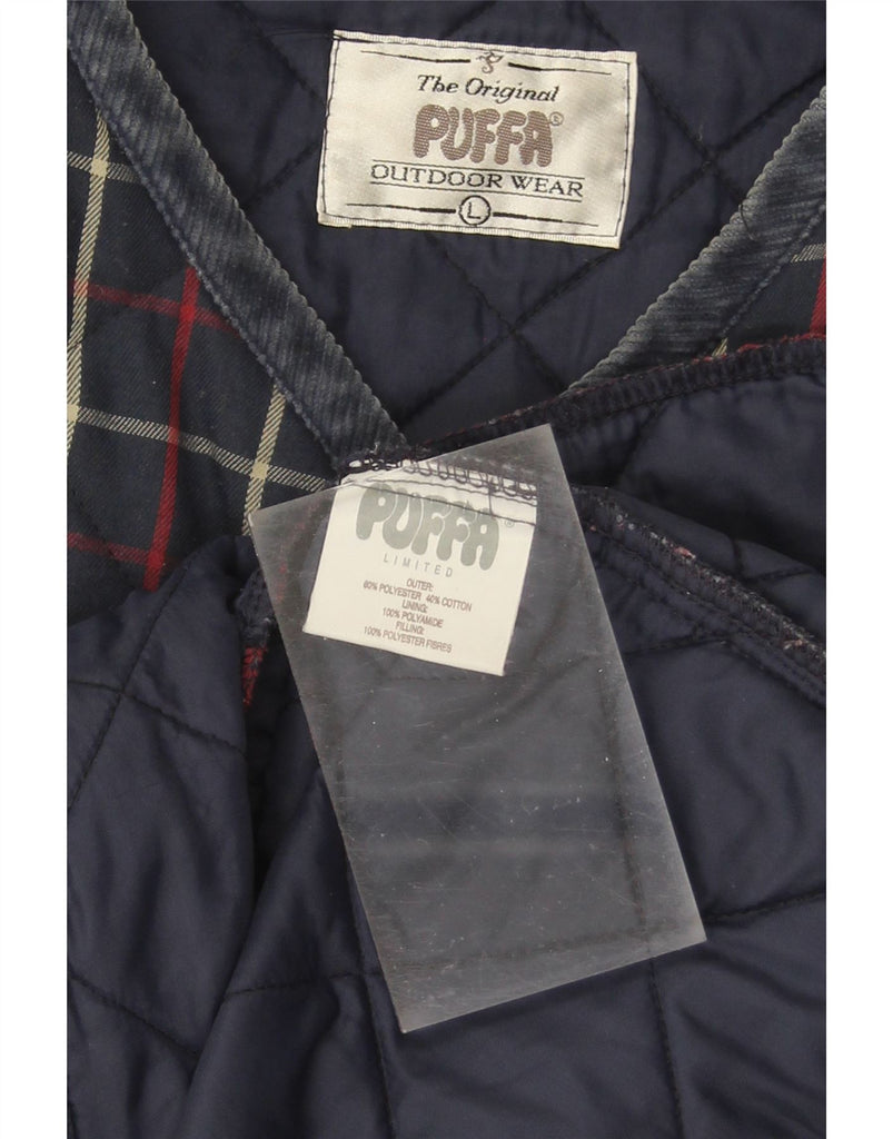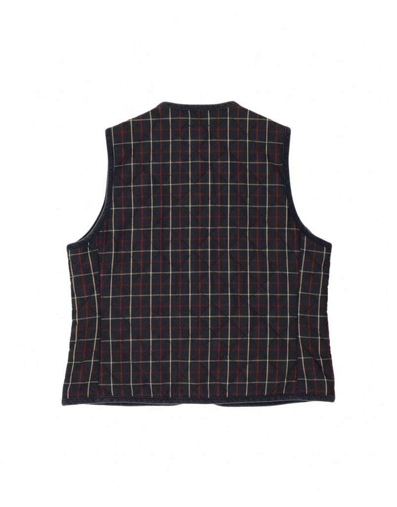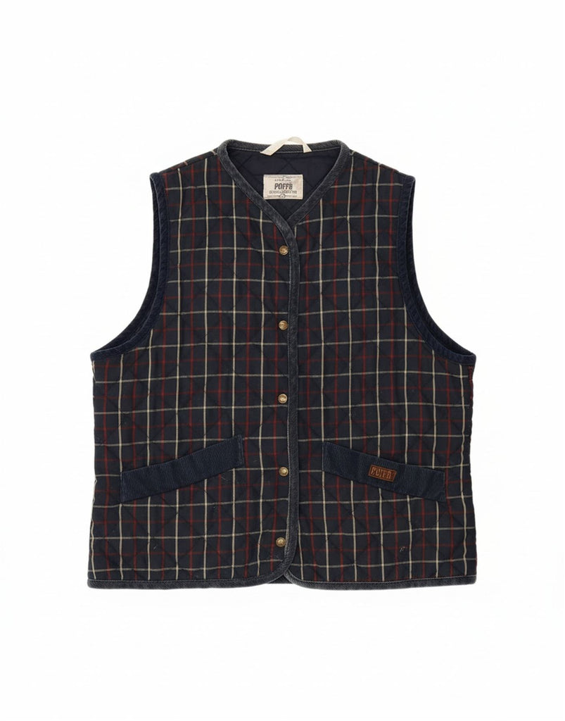 PUFFA Womens Gilet UK 16 Large Navy Blue Check Cotton
