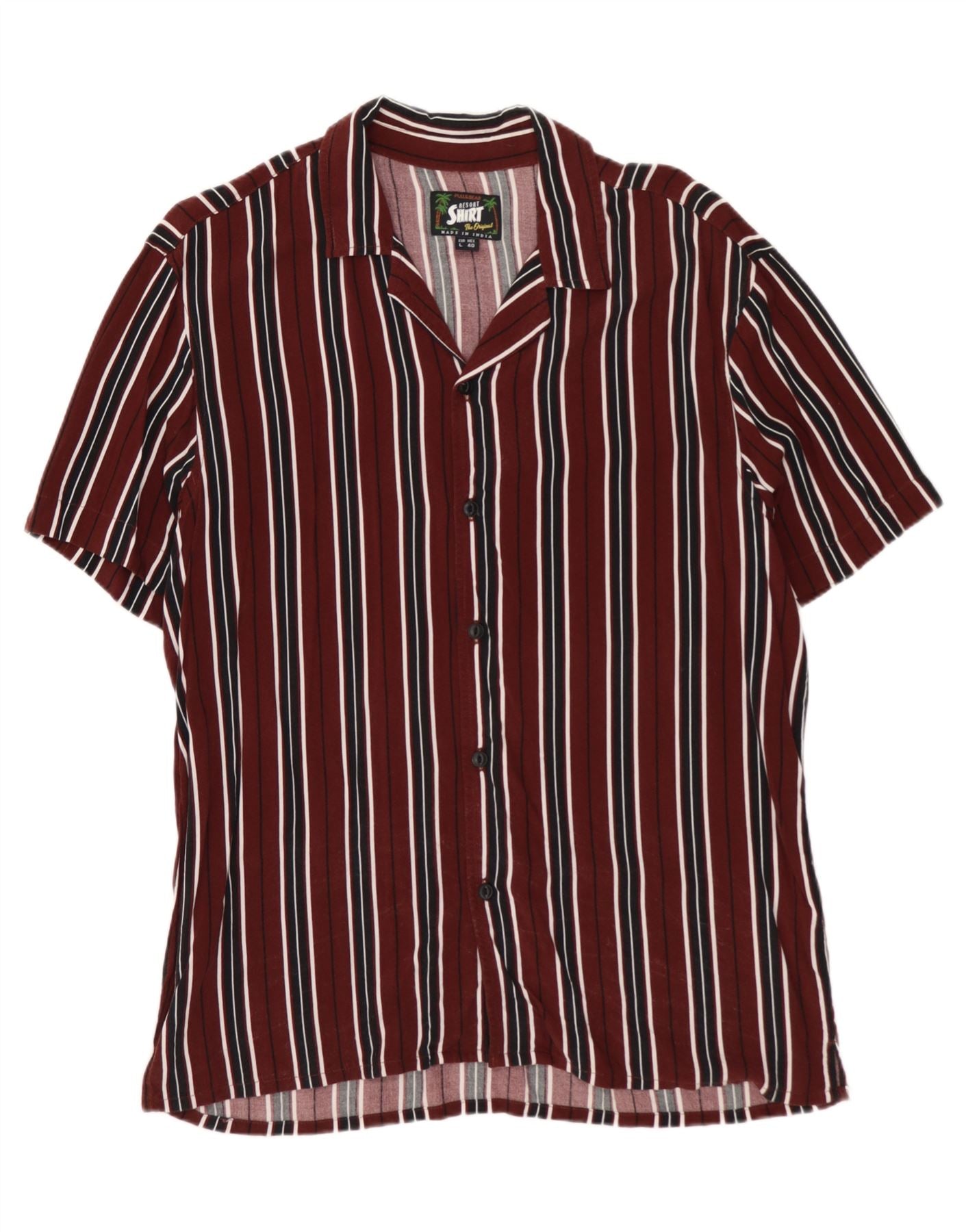 Мужская рубашка с коротким рукавом PULL & BEAR, большая бордовая полоска из вискозы