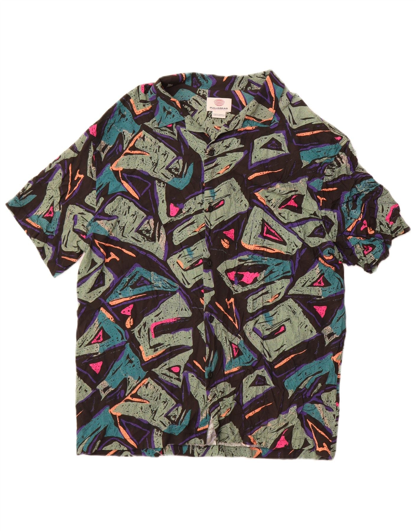 Мужская рубашка с коротким рукавом Pull & Bear XL, разноцветная вискоза с геометрическим рисунком