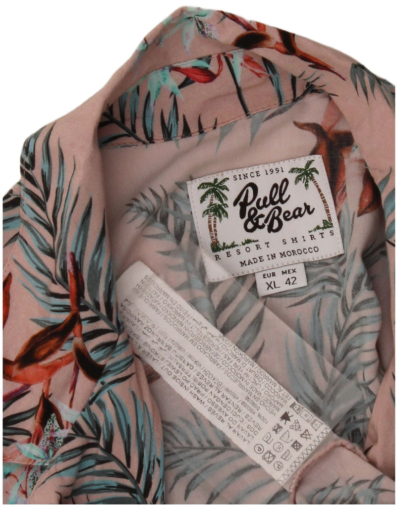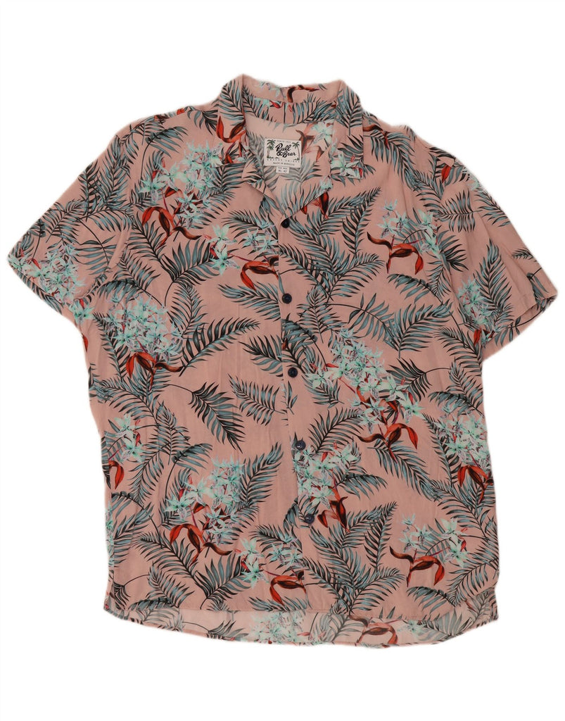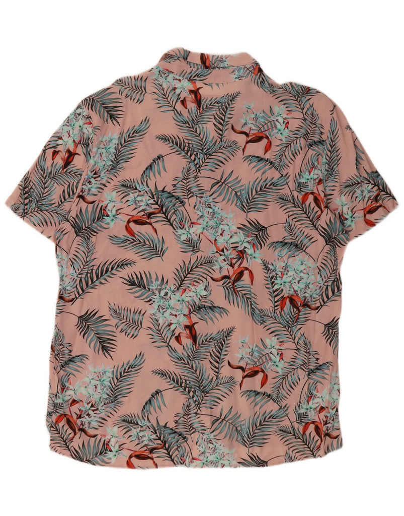 PULL & BEAR Мужская рубашка с коротким рукавом XL Розовая вискозная с цветочным принтом Гавайская