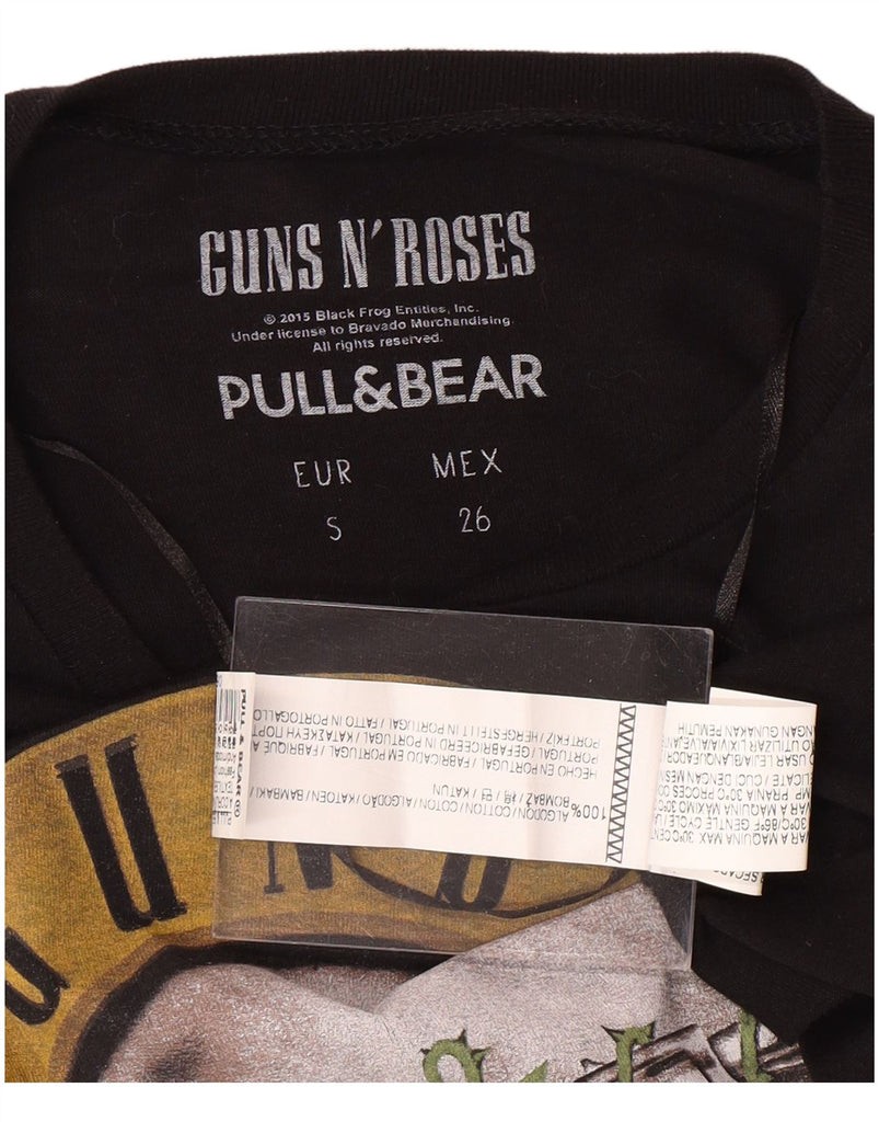 PULL & BEAR Womens Guns & Roses Oversized Crop Top UK 10 Small Black
