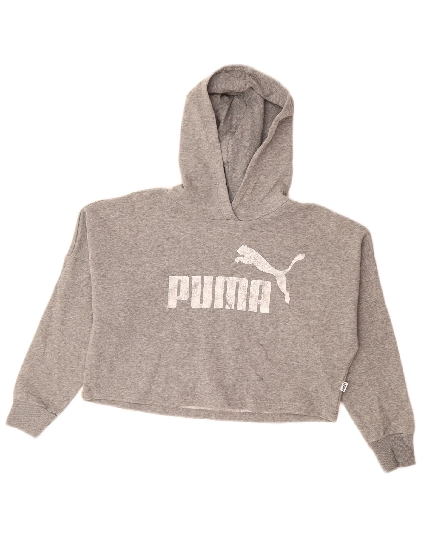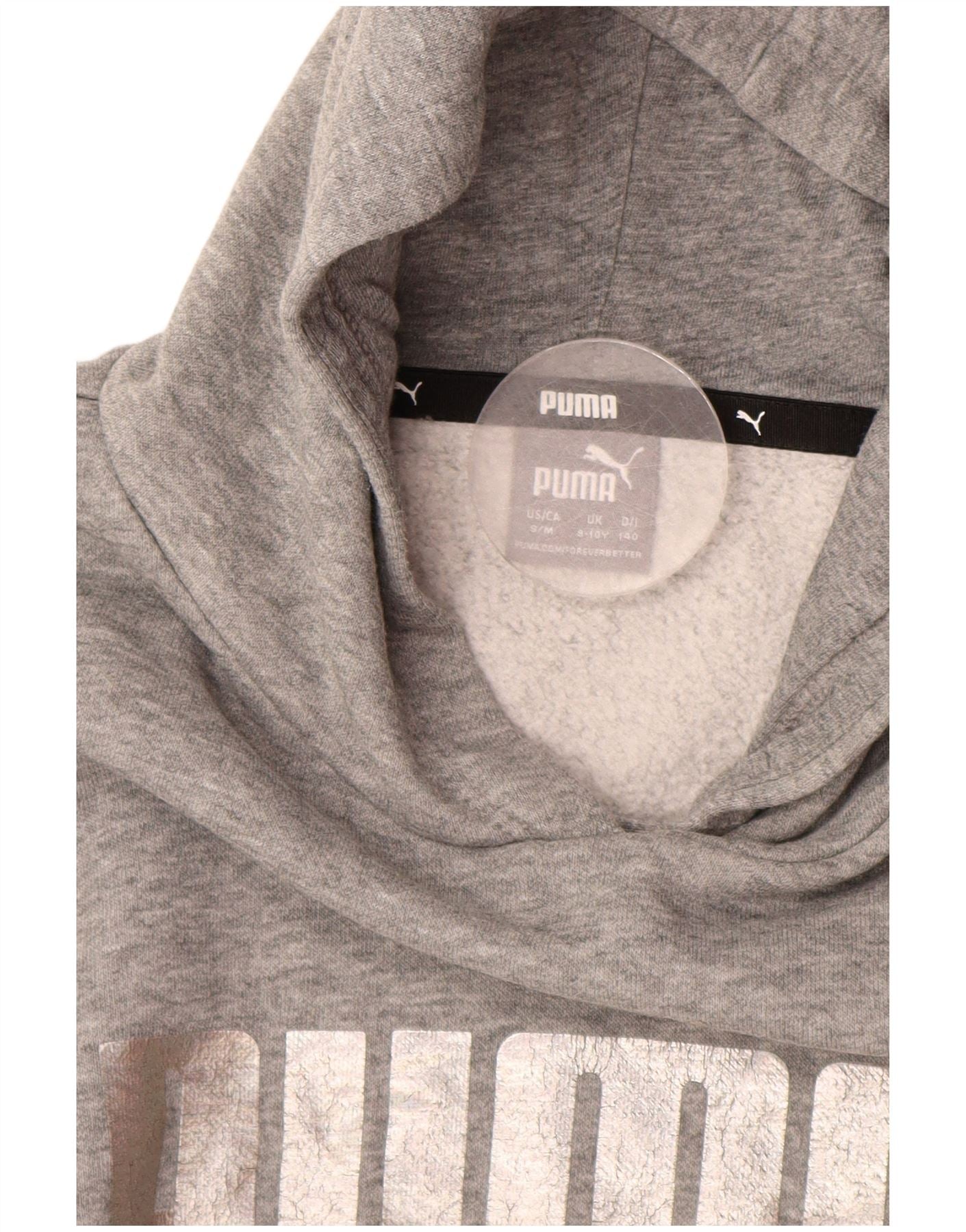 PUMA Укороченный джемпер с капюшоном и рисунком для девочек, 9–10 лет, серый хлопок