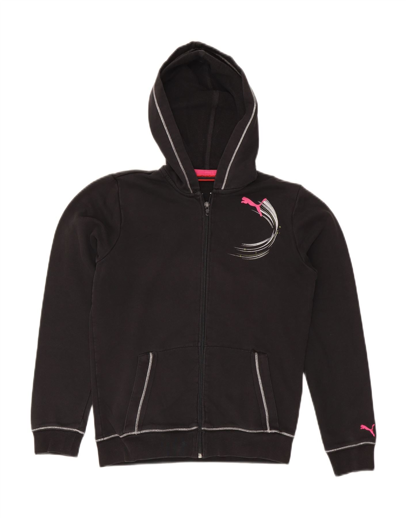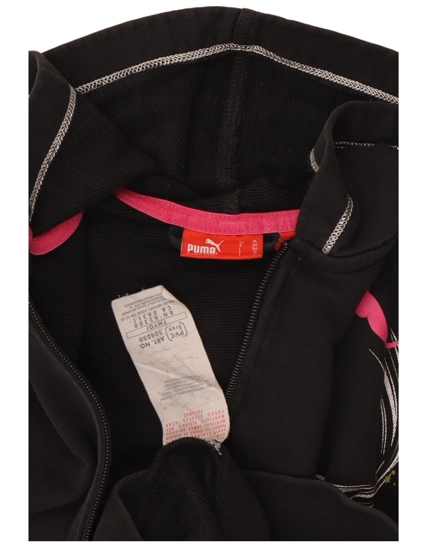 Свитер с капюшоном и молнией с графическим рисунком PUMA для девочек 13–14 лет, черный хлопок