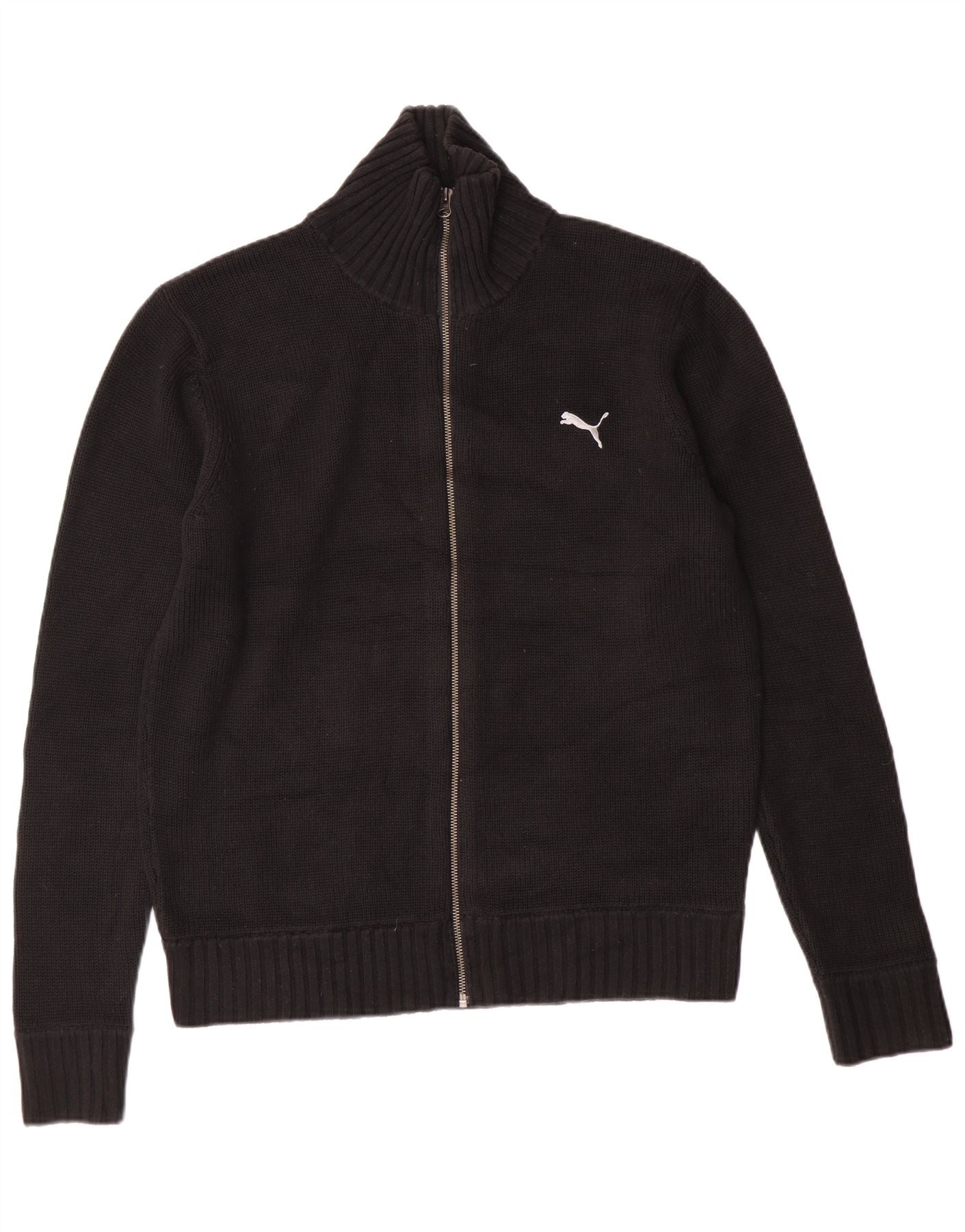 - Описание ИИ: Мужской кардиган Puma выполнен из смеси черного акрила и хлопка. Имеет высокий воротник и застежку-молнию по всей длине для универсального стиля. Длинные рукава и стандартный крой обеспечивают комфортное ношение. Дизайн включает практичные карманы и изящный логотип Puma. Ребристые манжеты и подол завершают этот спортивный и функциональный образ.