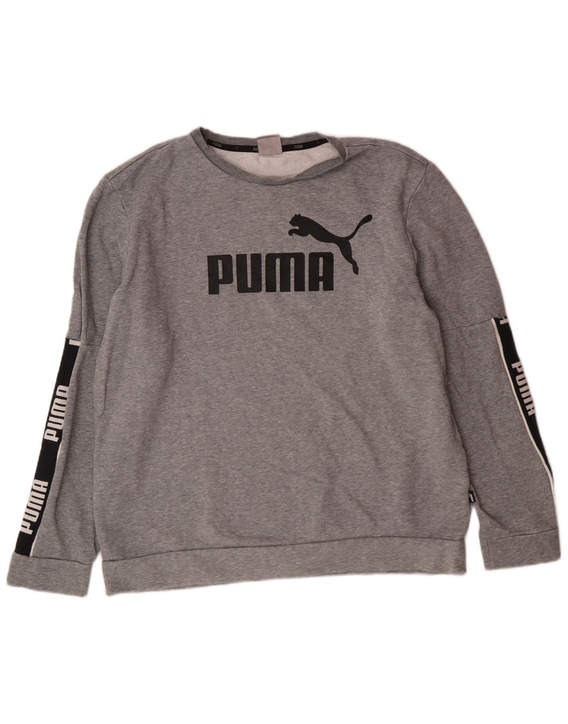 Мужской свитшот с рисунком PUMA, большой серый хлопковый джемпер с цветными блоками