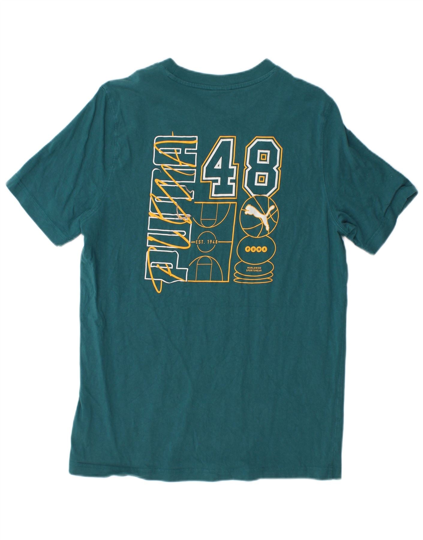 Мужская футболка с рисунком PUMA, хлопковый топ среднего зеленого цвета