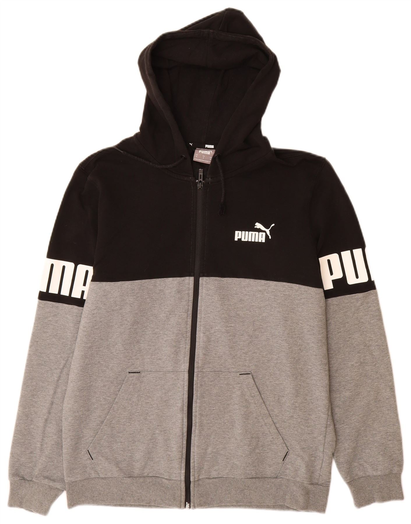 PUMA Мужской свитер с капюшоном и молнией с графическим рисунком, средний черный, хлопок с цветными блоками