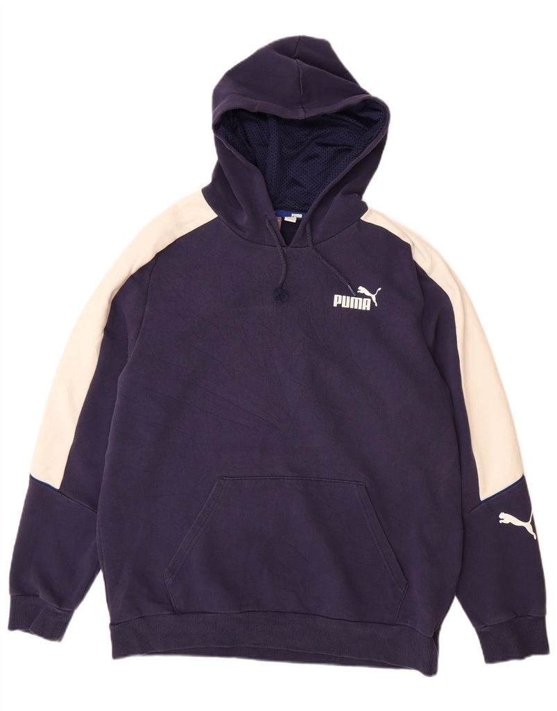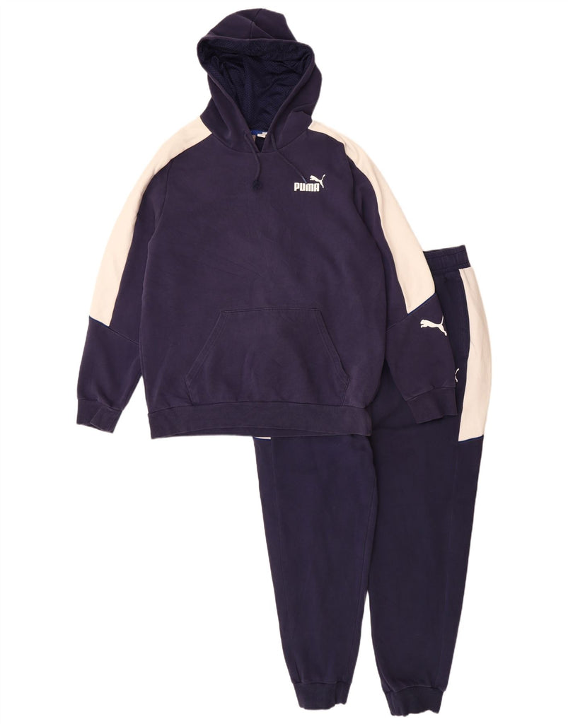 Мужской спортивный костюм PUMA с полным капюшоном, большой темно-синий, хлопок с цветными блоками