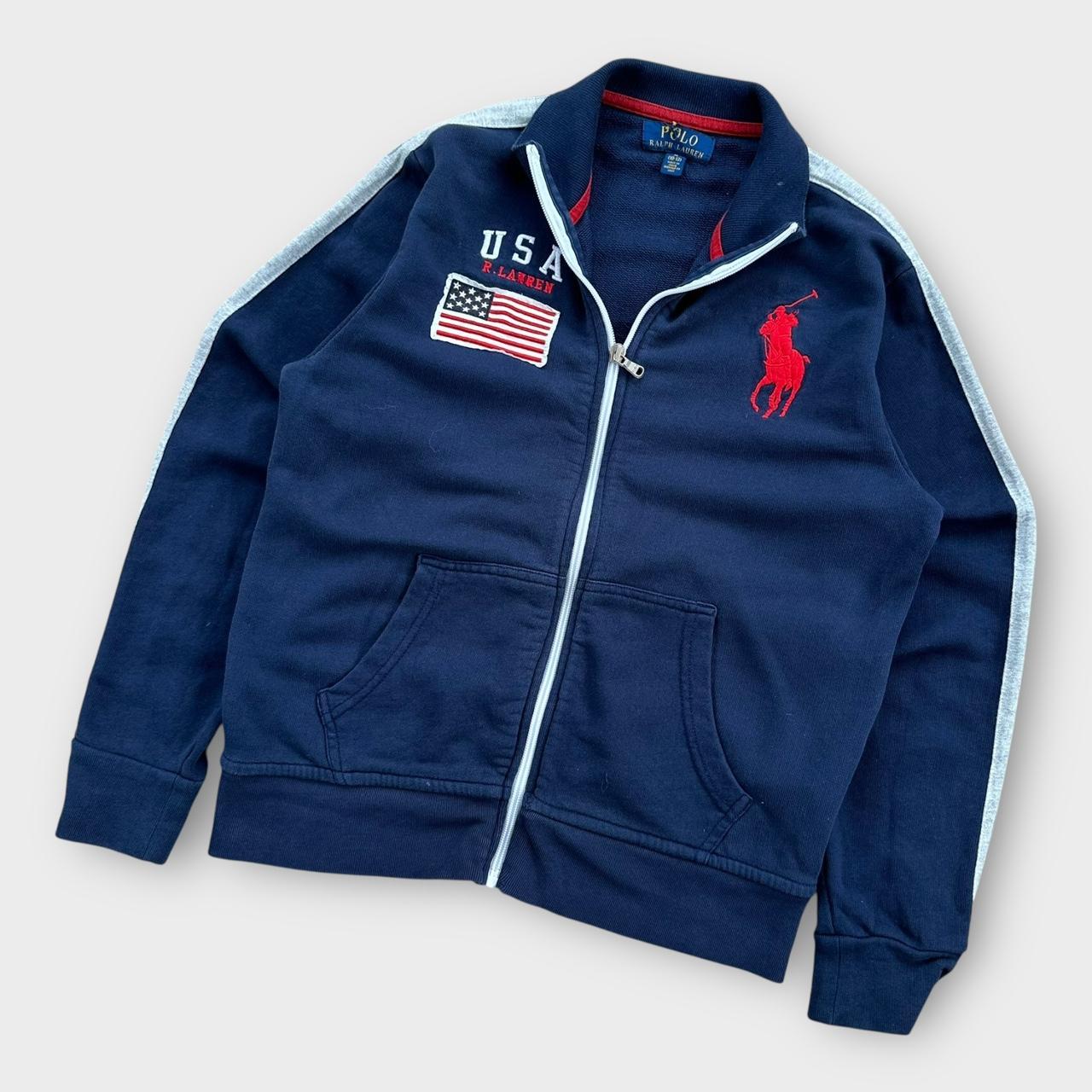 Темно-синий джемпер на молнии с изображением пони и вышитым логотипом на груди Polo Ralph Lauren
