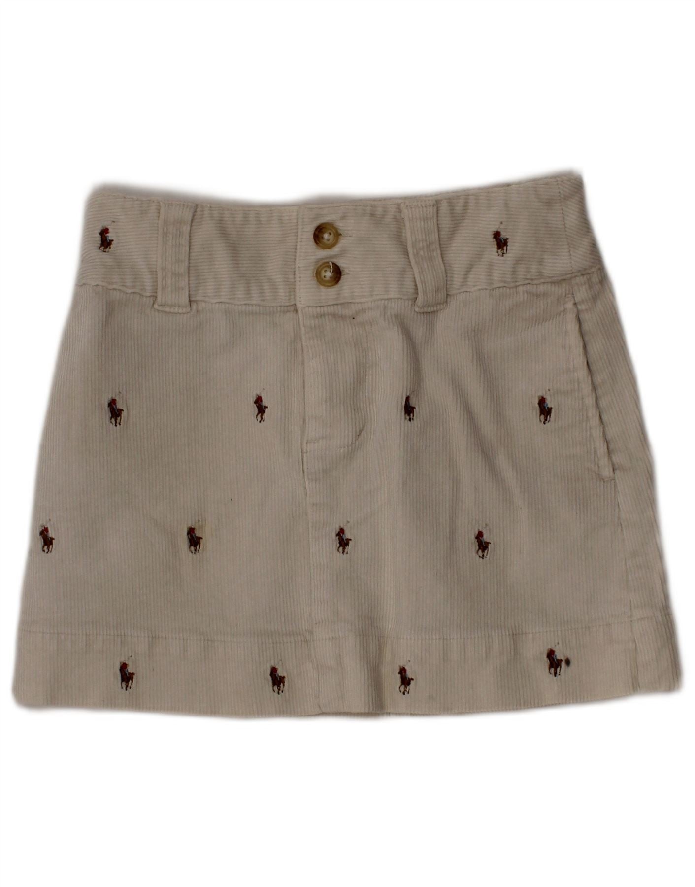 - AI Description: This Ralph Lauren baby girls' Corduroy Skirt is crafted from soft off white cotton corduroy with a hint of stretch. The fabric offers both comfort and durability. It features a classic A-line silhouette, perfect for easy movement. A button closure secures the waist. Practical pockets add functionality. A subtle graphic logo provides a signature touch. The regular fit ensures comfortable wear for little ones.