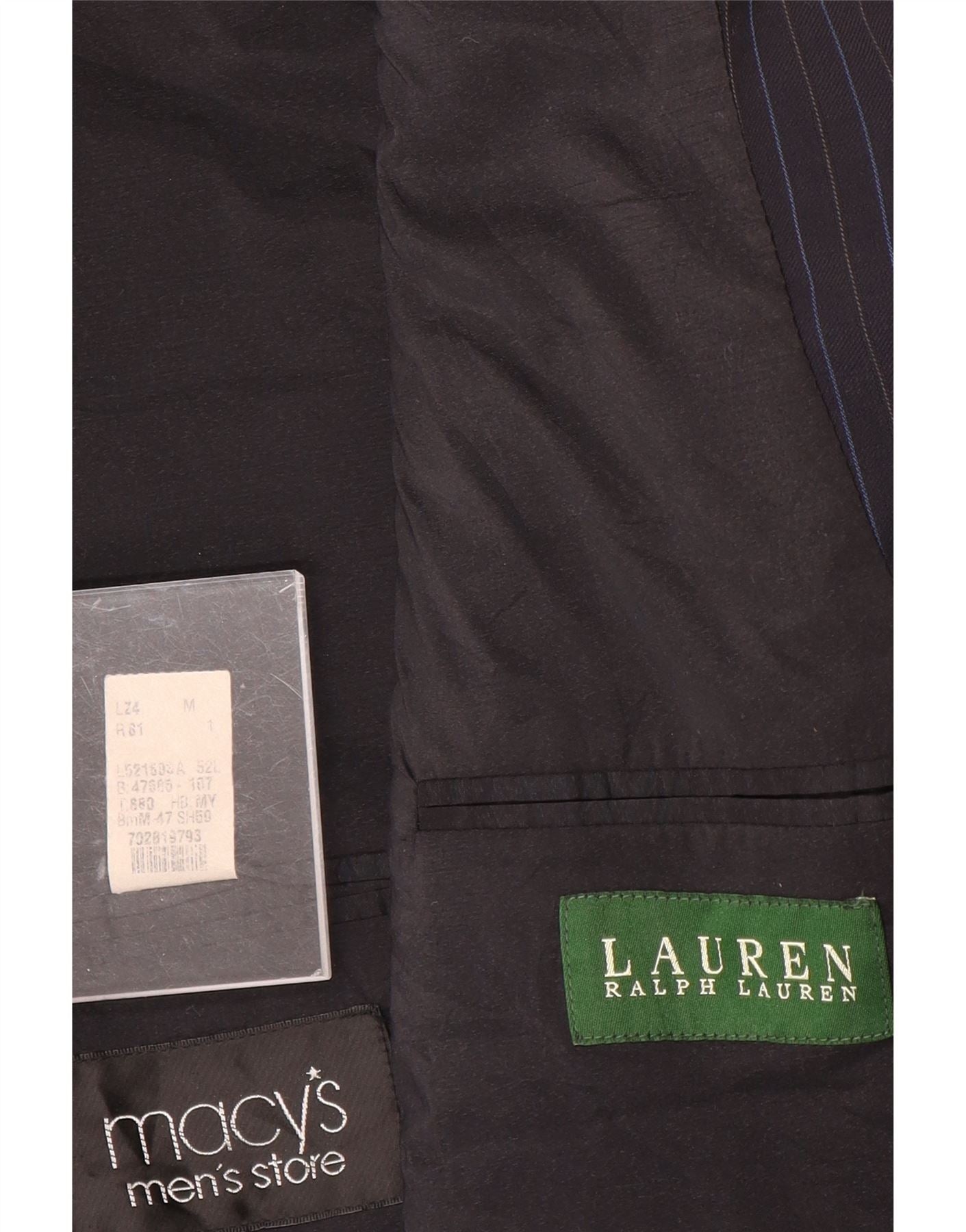 RALPH LAUREN Мужской пиджак на 2 пуговицах IT 52 XL Темно-синий в тонкую полоску Шерсть