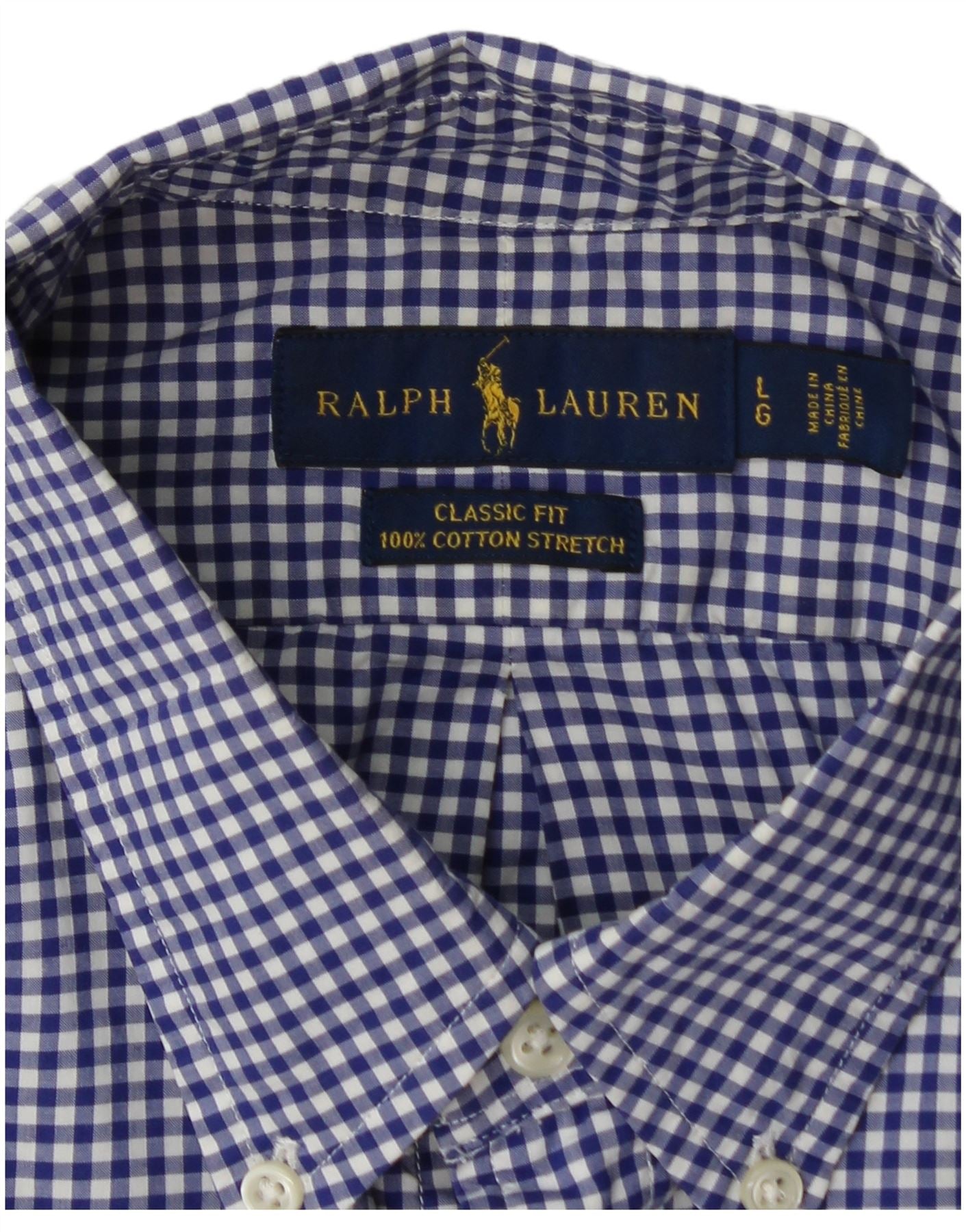 Home > Ральф Лорен > Мужской > Рубашки > Мужская рубашка классического кроя RALPH LAUREN, большая синяя хлопковая клетка в мелкую клетку