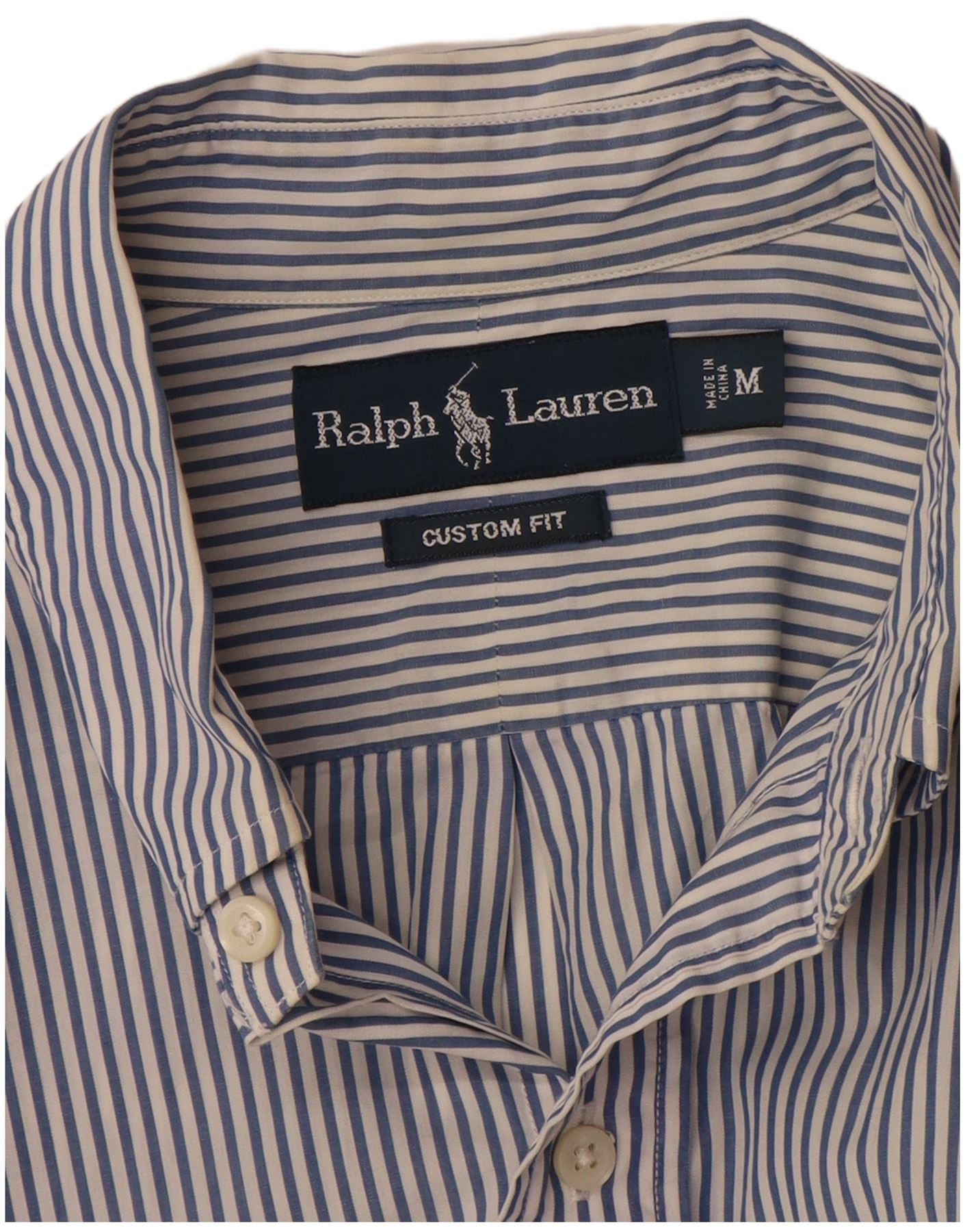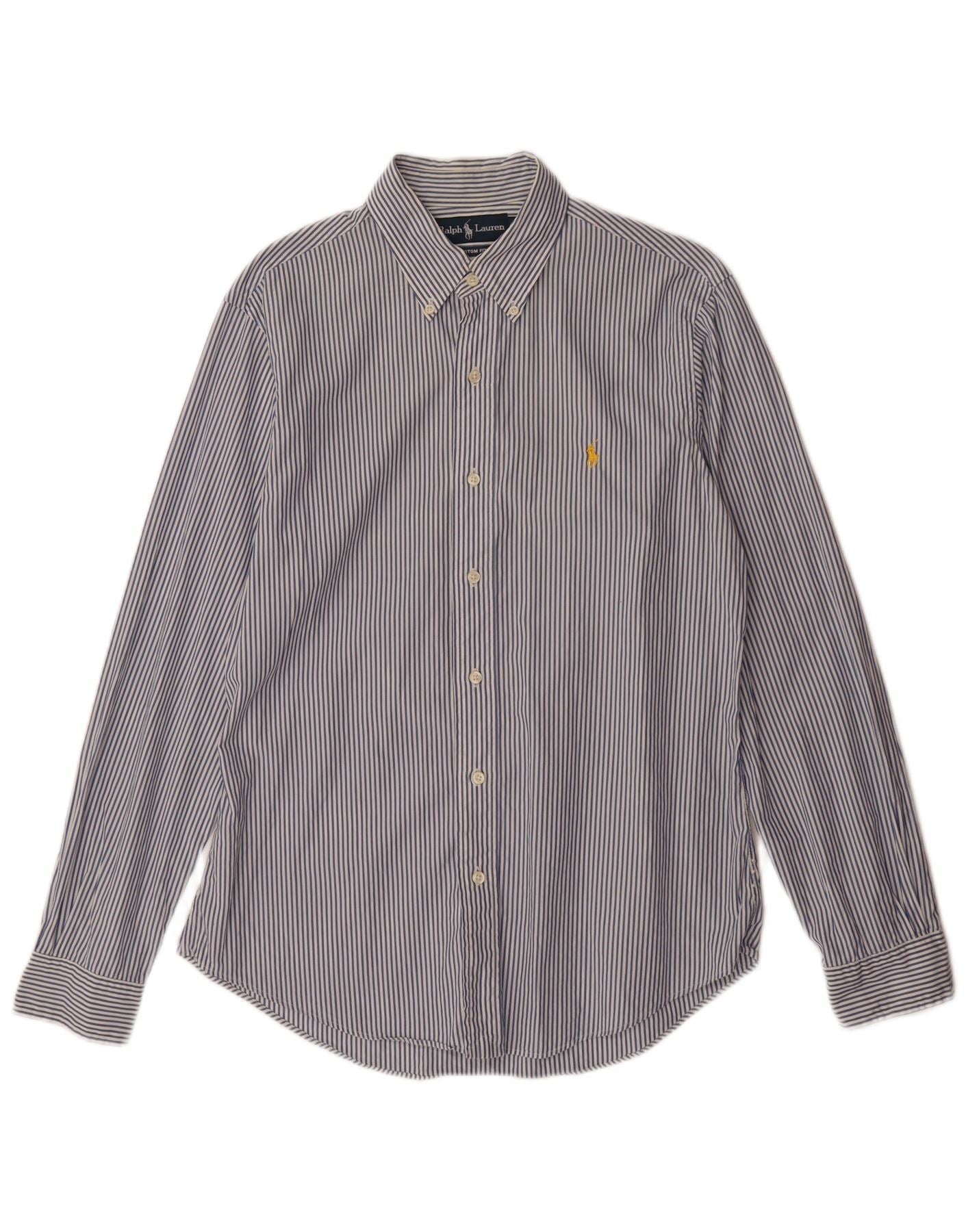 RALPH LAUREN Мужская рубашка на заказ из хлопка в синюю полоску среднего размера