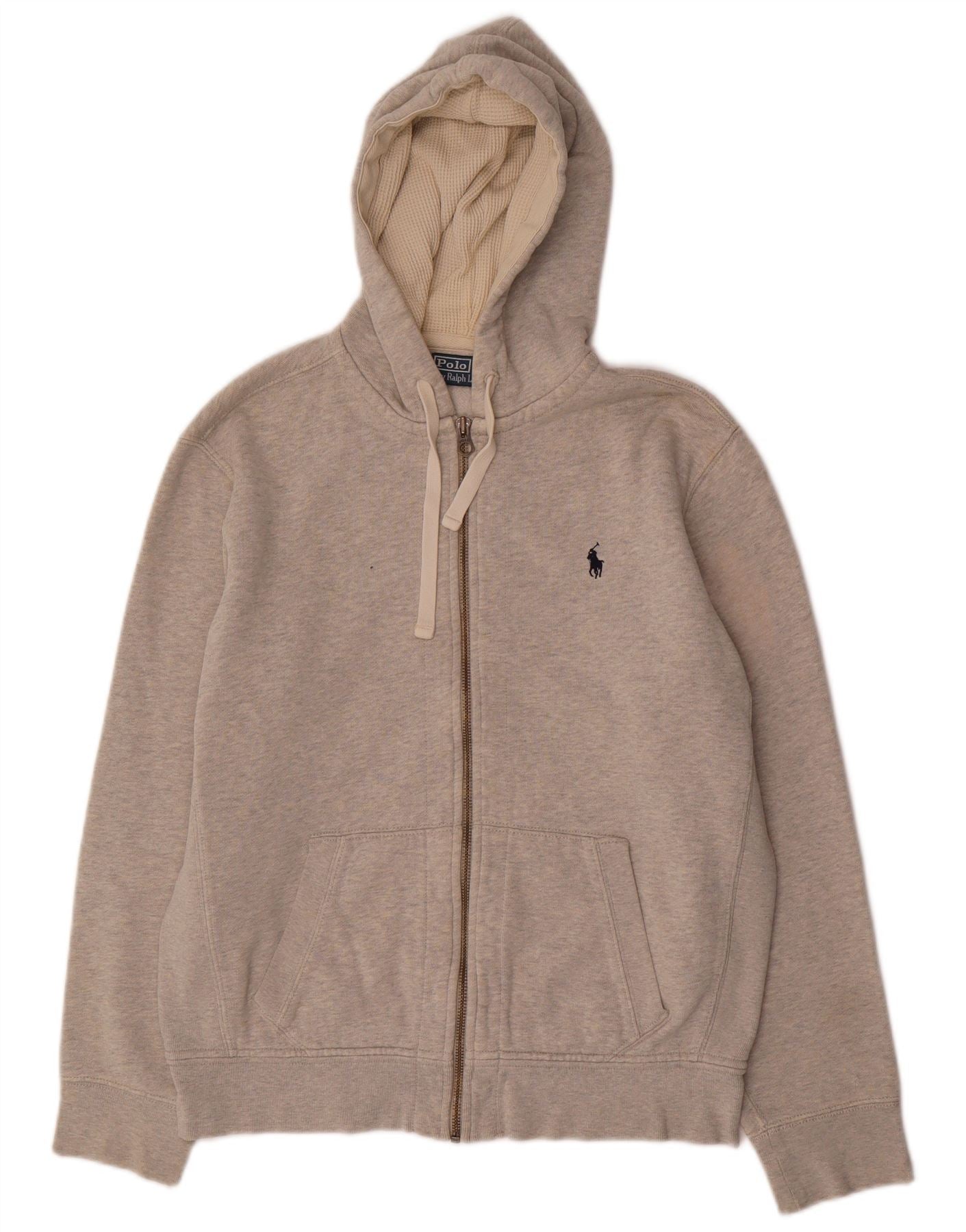 RALPH LAUREN Mens Zip Hoodie Sweater Large Grey Cotton