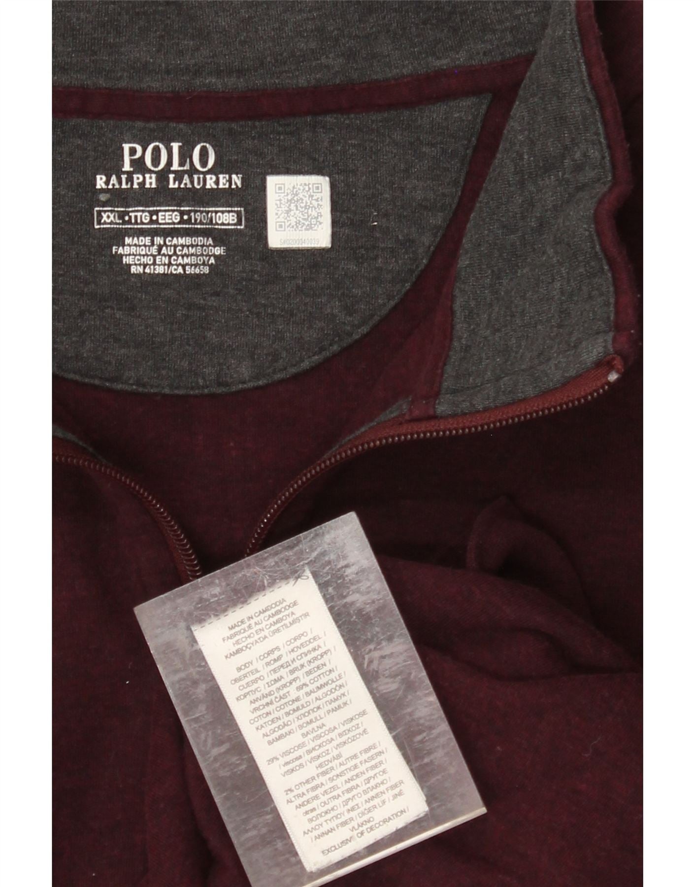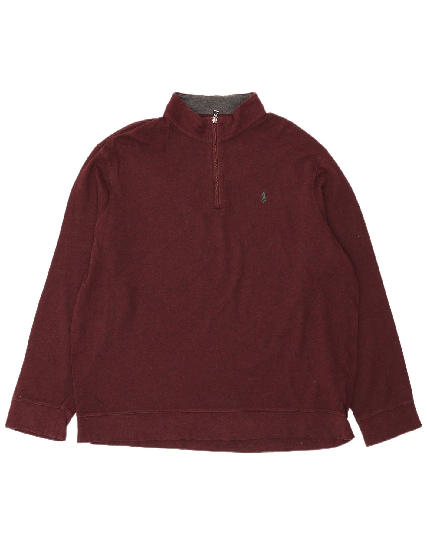 RALPH LAUREN Mens Zip Neck Sweatshirt Jumper 2XL Burgundy Cotton