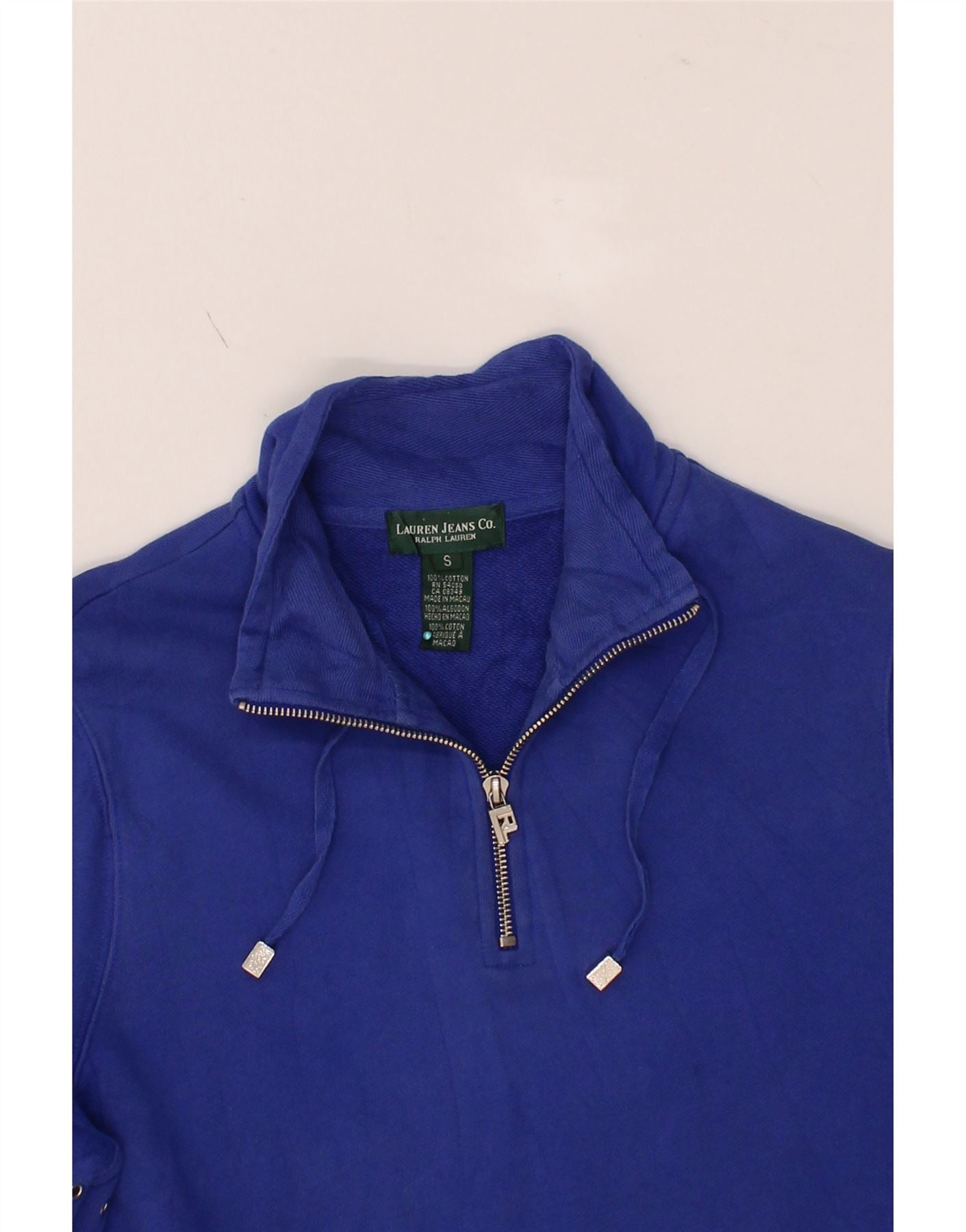 RALPH LAUREN Mens Zip Neck Sweatshirt Jumper Small Blue Cotton