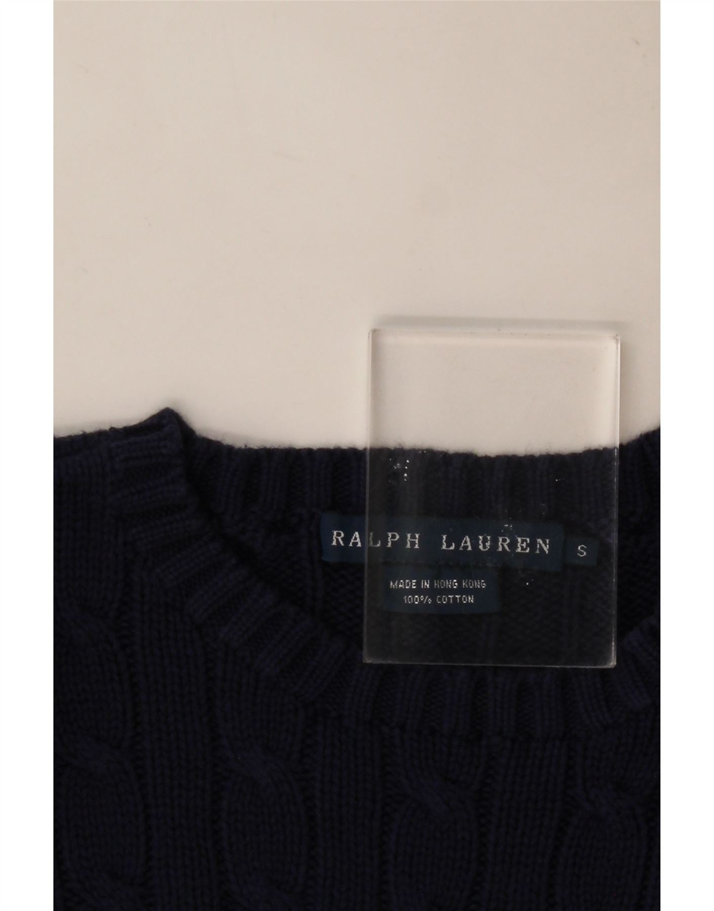 - AI Description: This Ralph Lauren womens Crew Neck Jumper is crafted from soft 100 percent cotton knit fabric. It comes in a versatile navy blue hue. The round neck and long sleeves offer a classic silhouette. Its pullover style ensures easy wear. A regular fit provides comfortable movement. An embroidered logo adds a subtle signature accent. This jumper offers both stretch and comfort for everyday wear.
