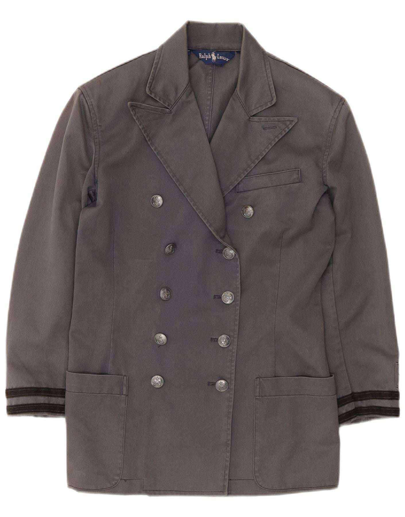 Женское двубортное пальто Ralph Lauren, размер 4, маленький размер, серый хлопок, США