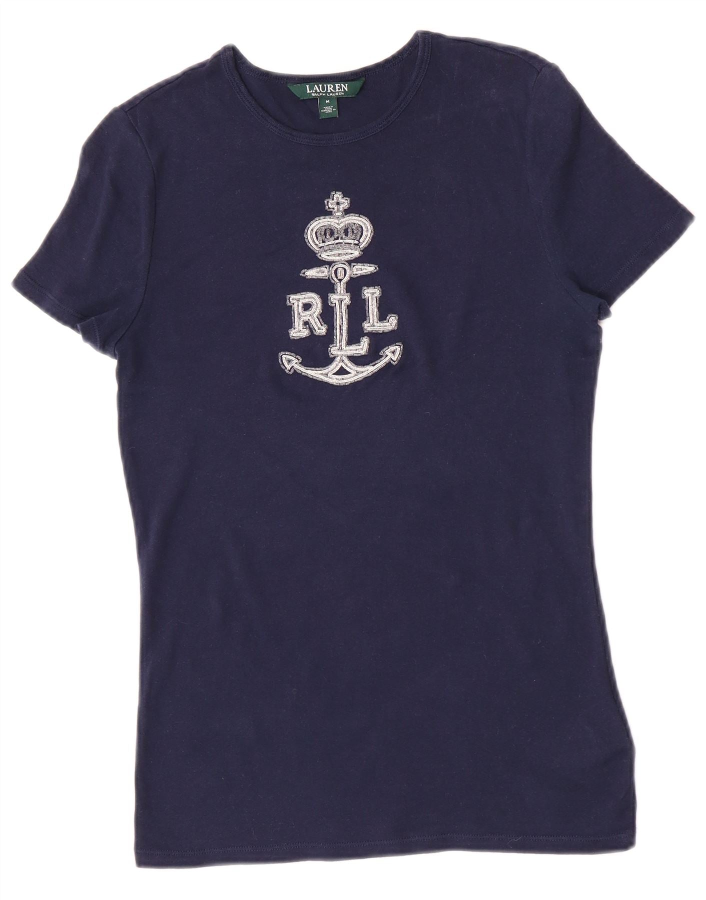 Женская футболка с рисунком Ralph Lauren Top UK 12, средний темно-синий хлопок