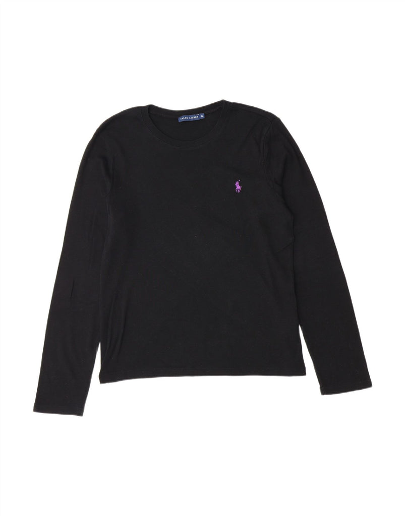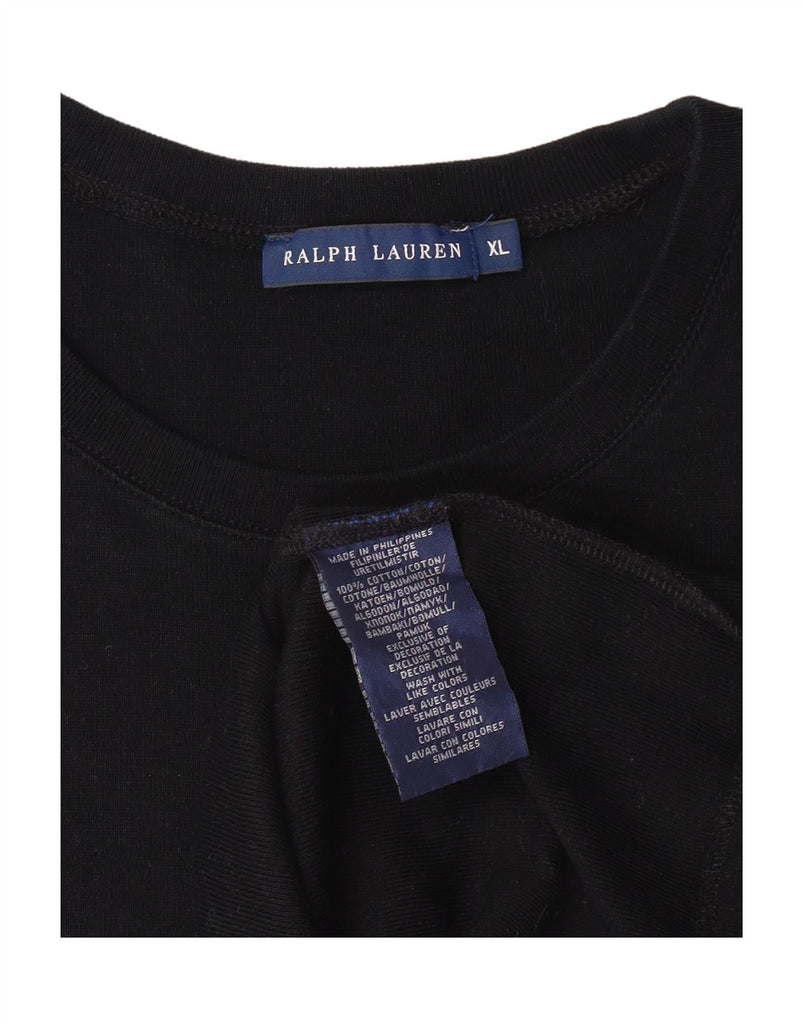 RALPH LAUREN Womens Graphic T-Shirt Top UK 18 XL Black Cotton Classic