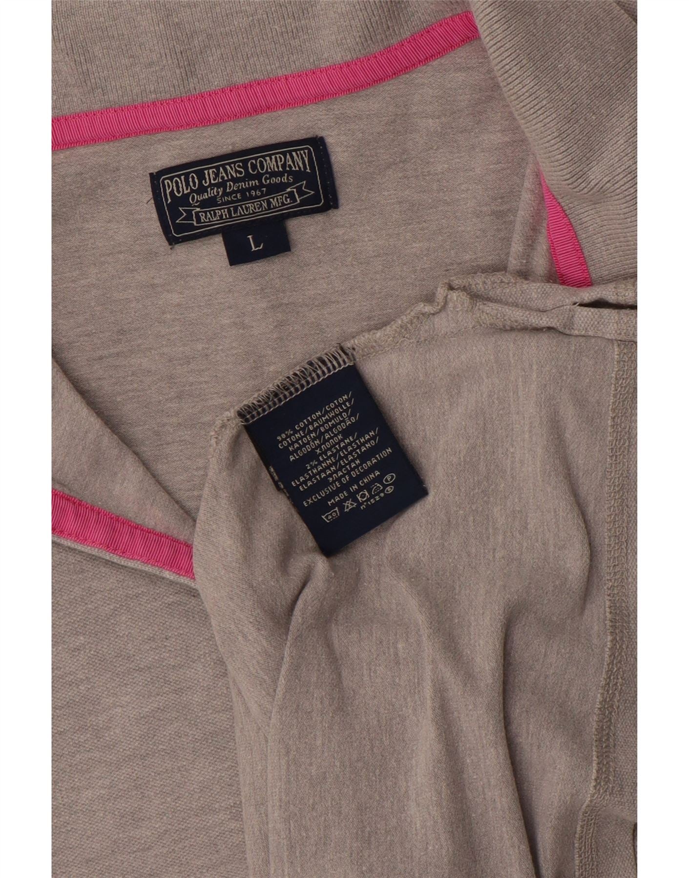 RALPH LAUREN Womens Polo Shirt UK 14 Large Grey Flecked Cotton