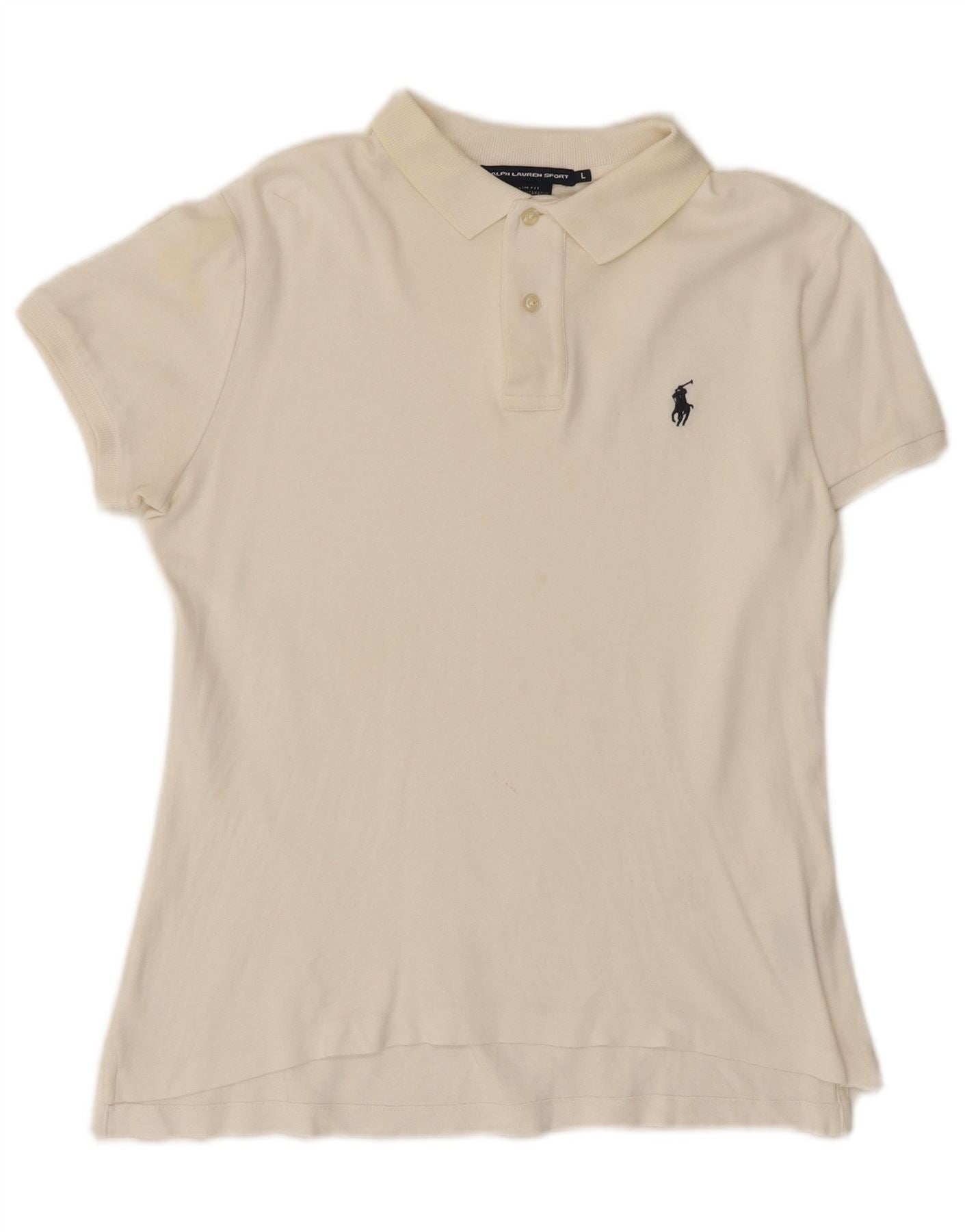 RALPH LAUREN Womens Polo Shirt UK 14 Large White Cotton