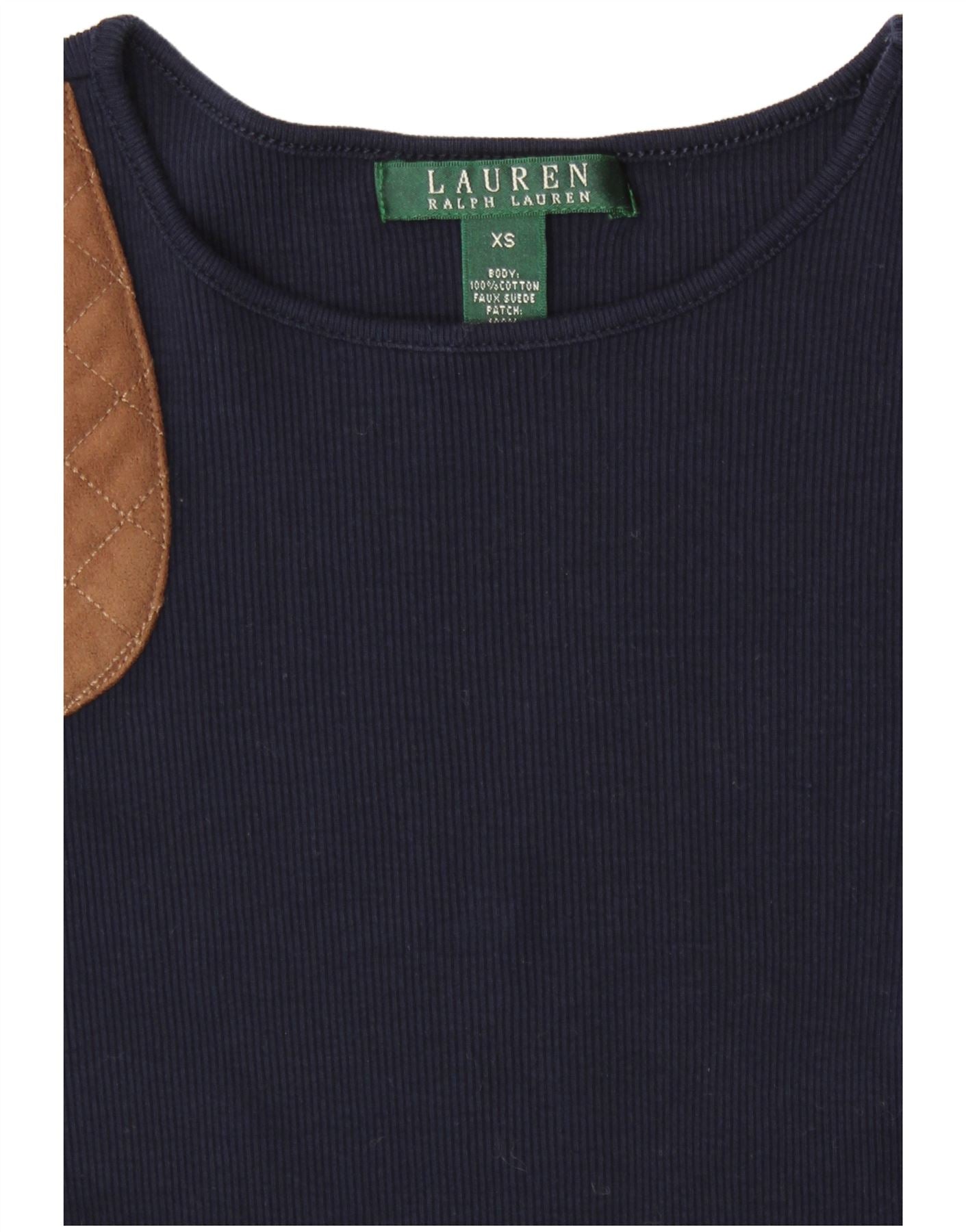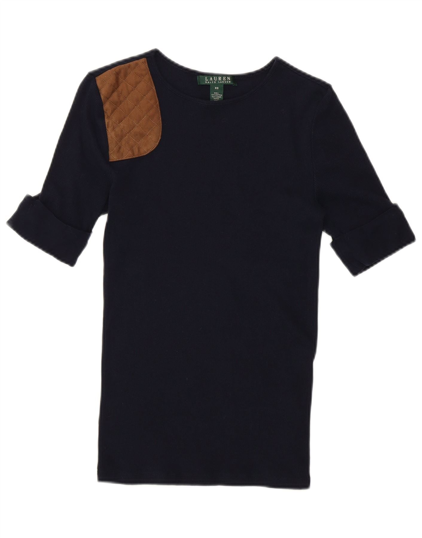RALPH LAUREN Womens Riding T-Shirt Top UK 6 XS Navy Blue Colourblock