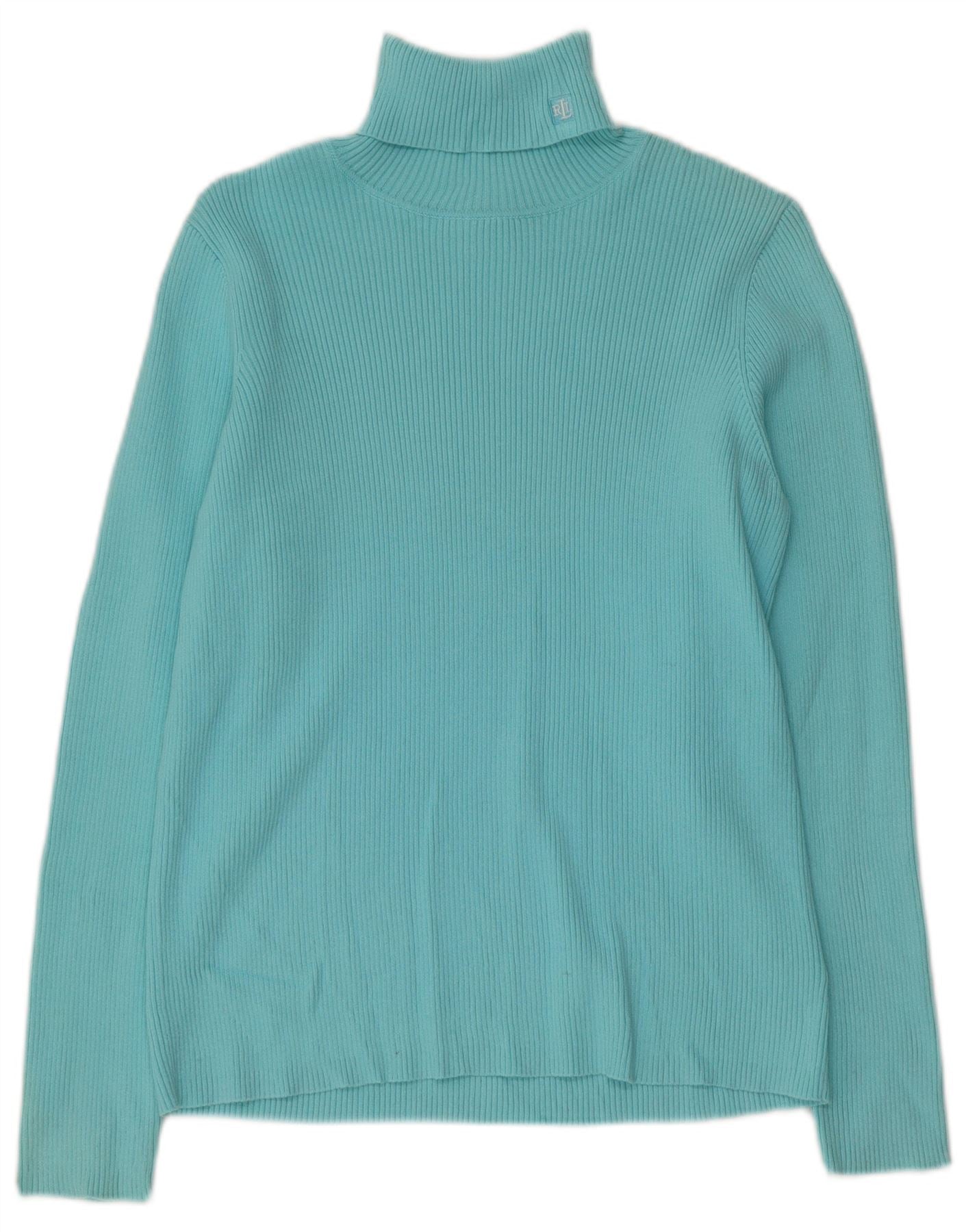 Женский джемпер с высоким воротником RALPH LAUREN, Великобритания 14, большой синий хлопок