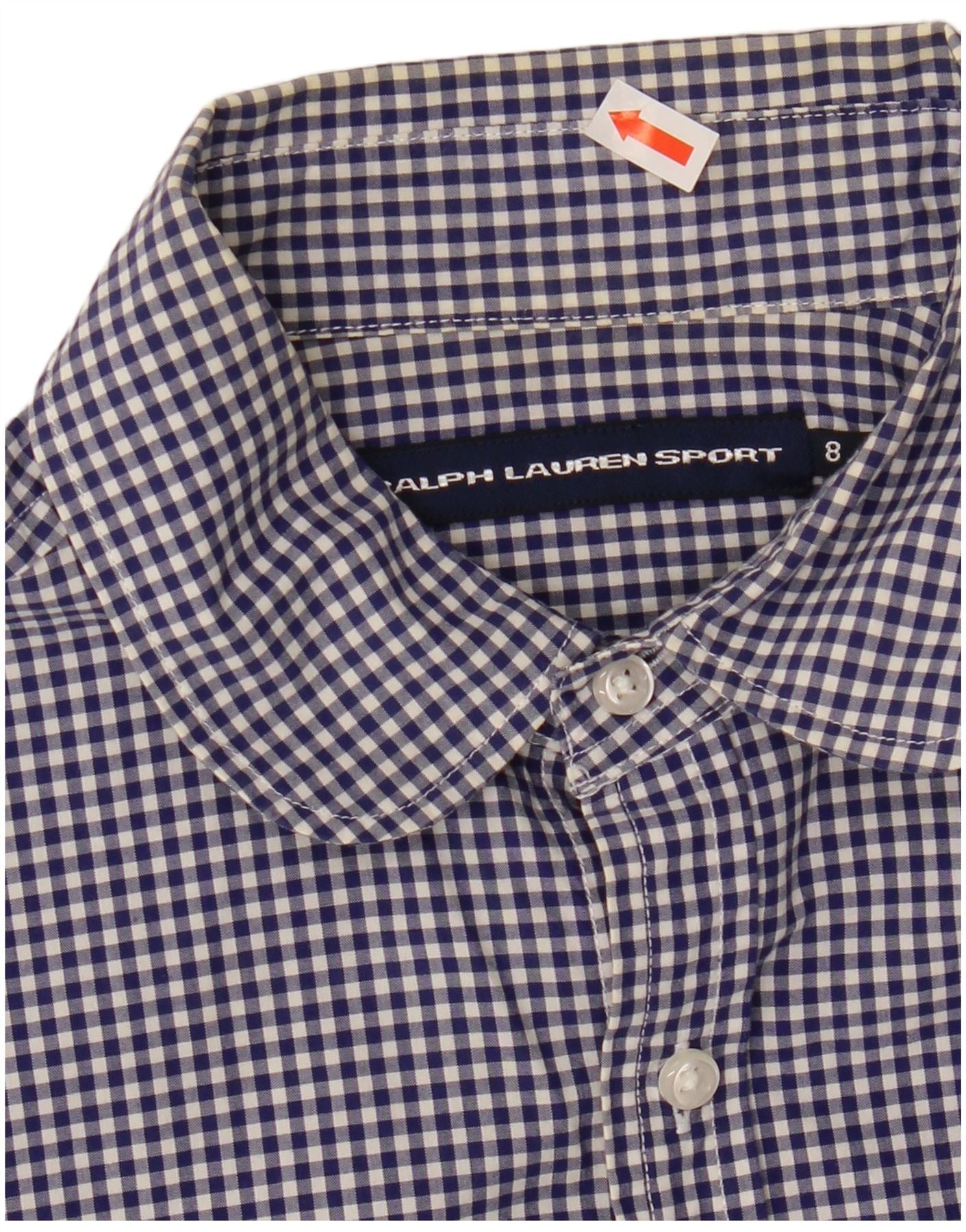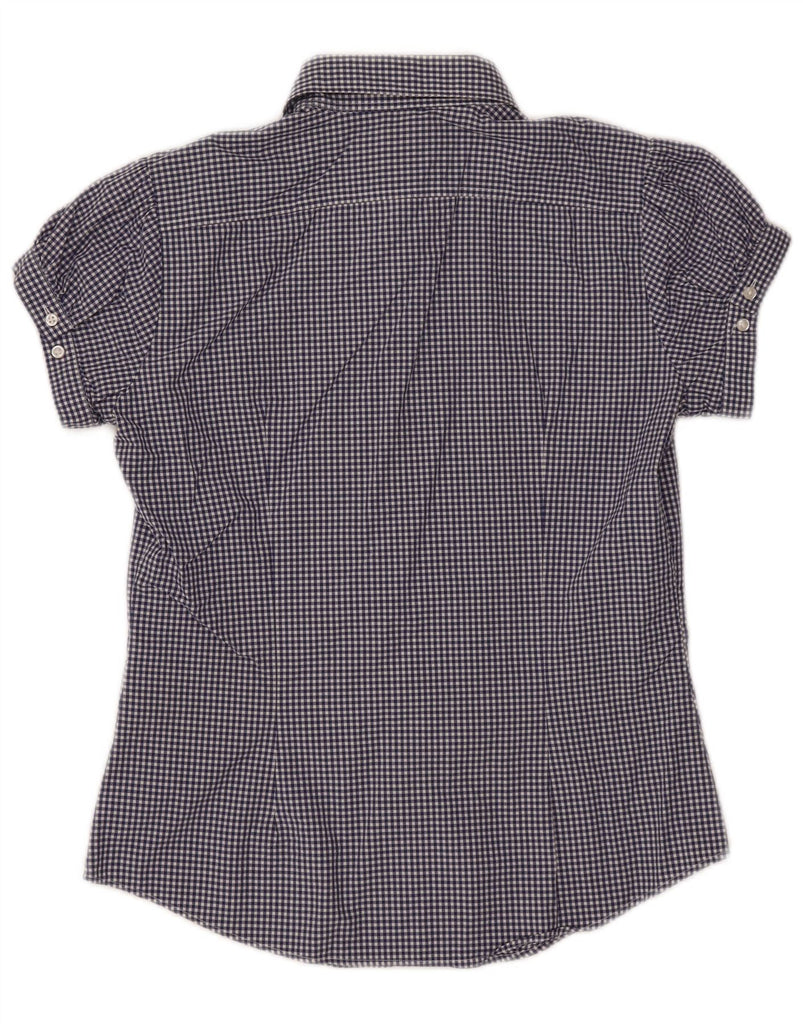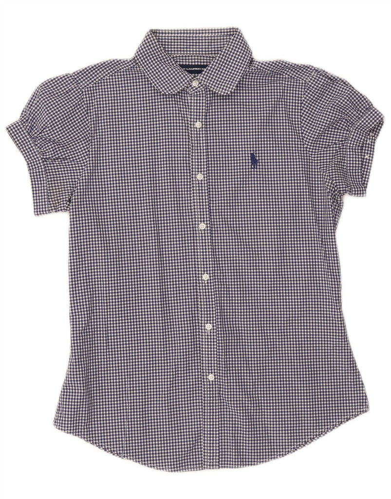 RALPH LAUREN Womens Short Sleeve Shirt US 8 Medium Blue Gingham Cotton