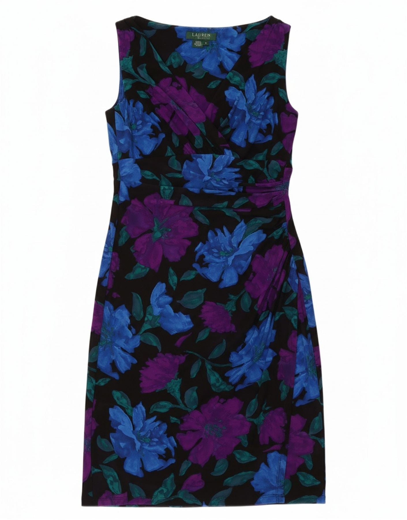 RALPH LAUREN Womens Sleeveless Sheath Dress US 8 Medium Navy Blue Floral