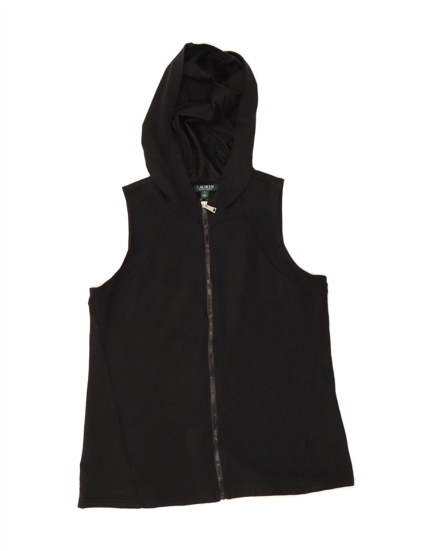 RALPH LAUREN Womens Sleeveless Zip Hoodie Sweater UK 14 Medium Black