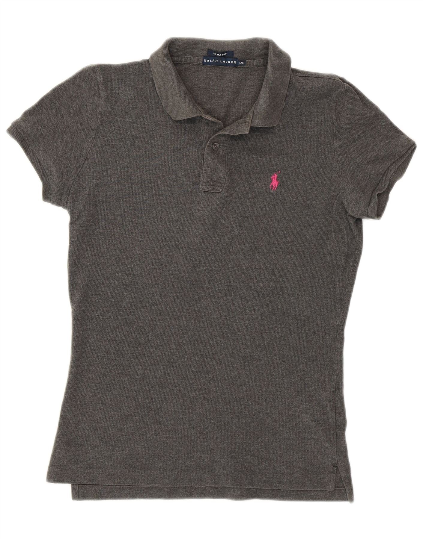 Home > Женский > Депоп Одежда > Женская рубашка поло узкого кроя RALPH LAUREN UK 14, большой размер, серый хлопок
