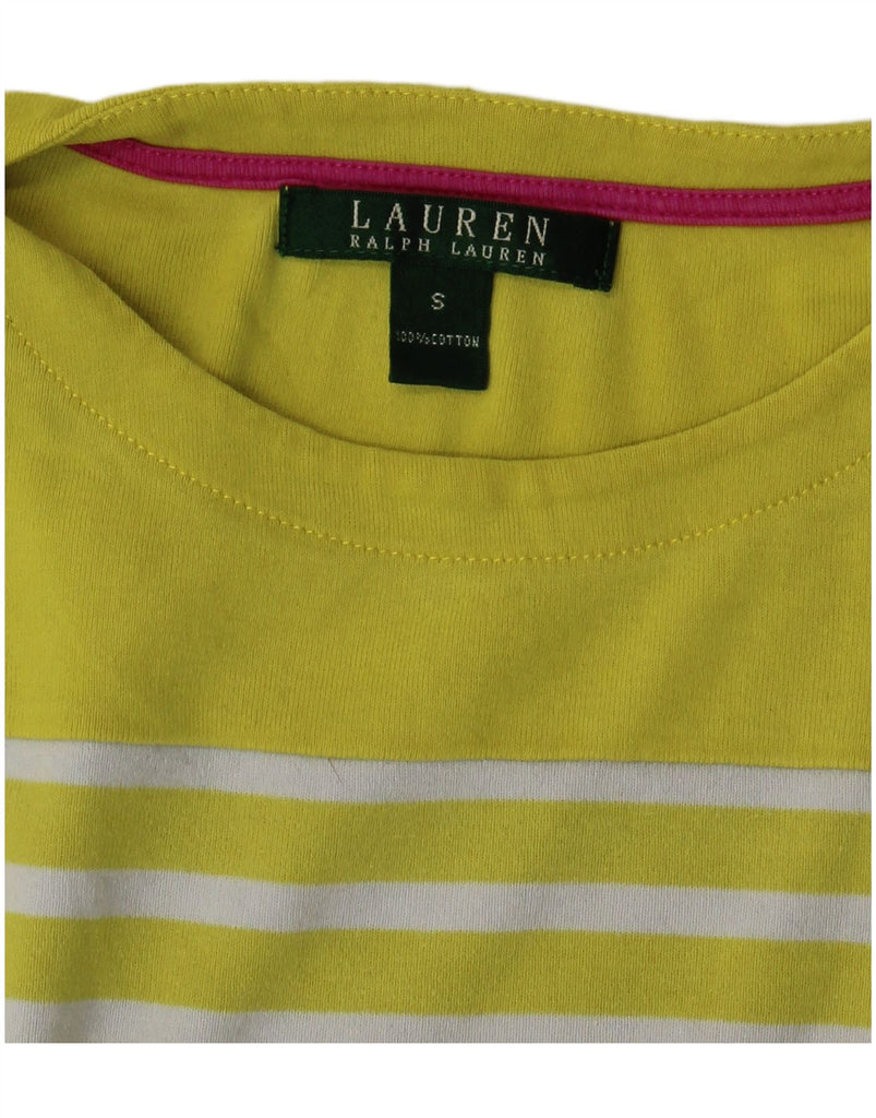 RALPH LAUREN Womens T-Shirt Top UK 10 Small Green Striped Cotton