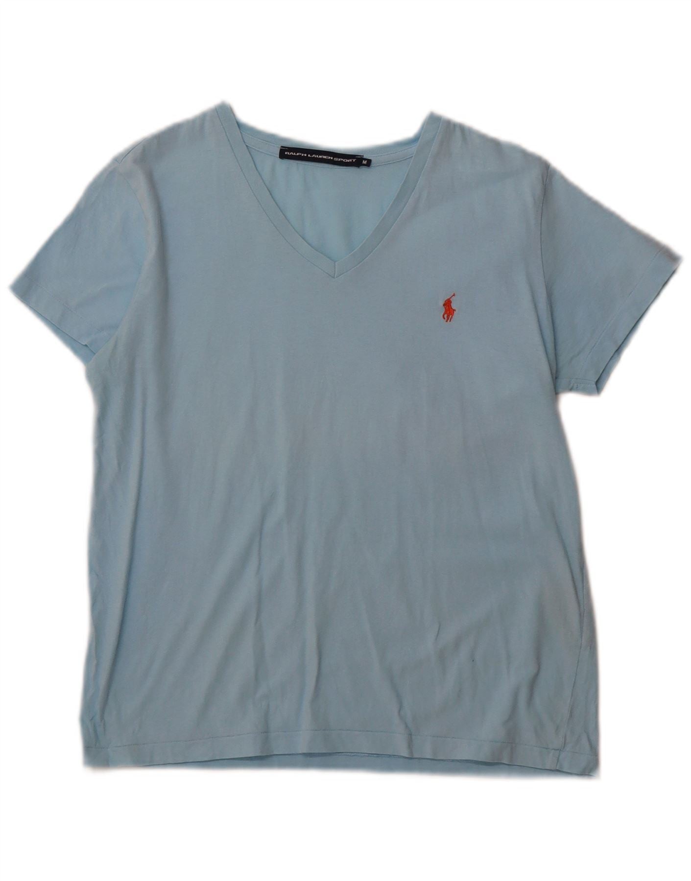 RALPH LAUREN Womens T-Shirt Top UK 14 Medium Blue Cotton