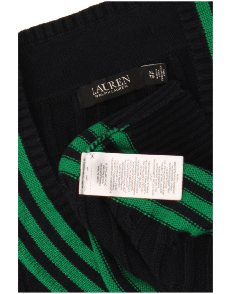 RALPH LAUREN Womens V-Neck Jumper Sweater UK 18 XL Navy Blue Cotton