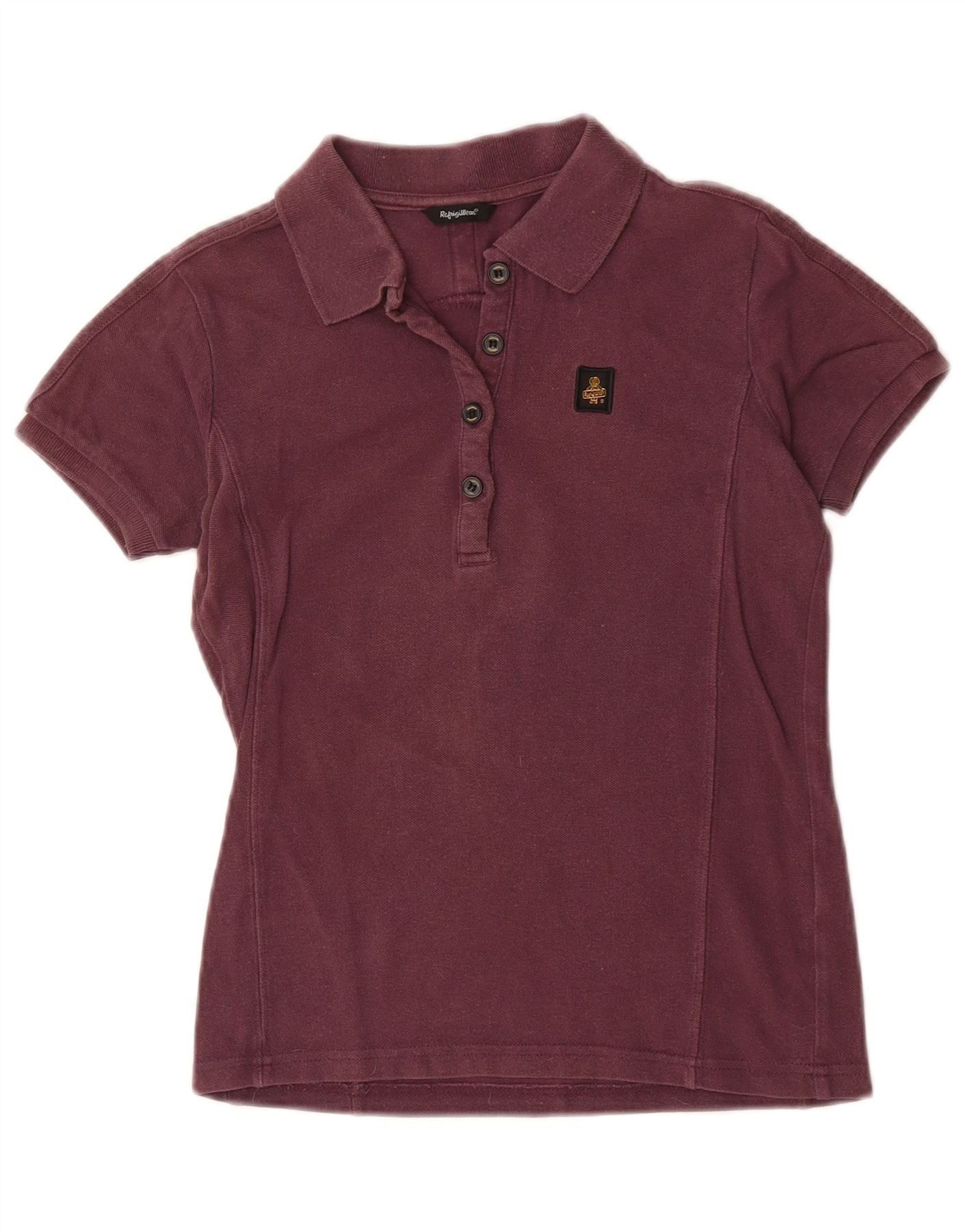 REFRIGIWEAR Womens Polo Shirt UK 12 Medium Burgundy Cotton