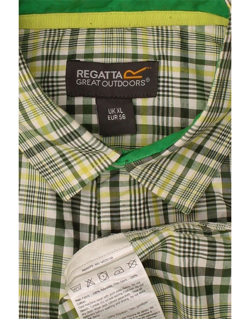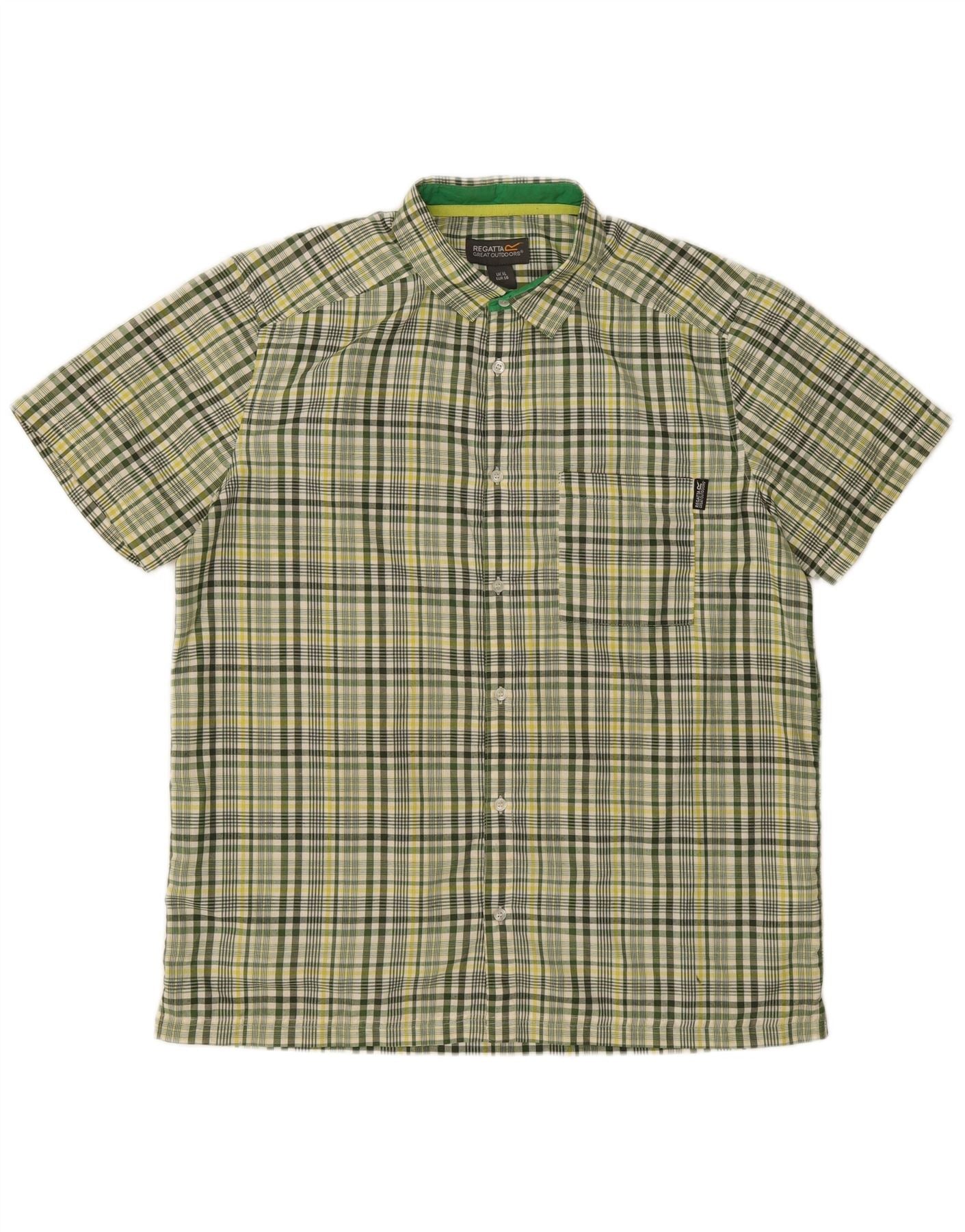 REGATTA Mens Short Sleeve Shirt EU 56 XL Khaki Check Polyester