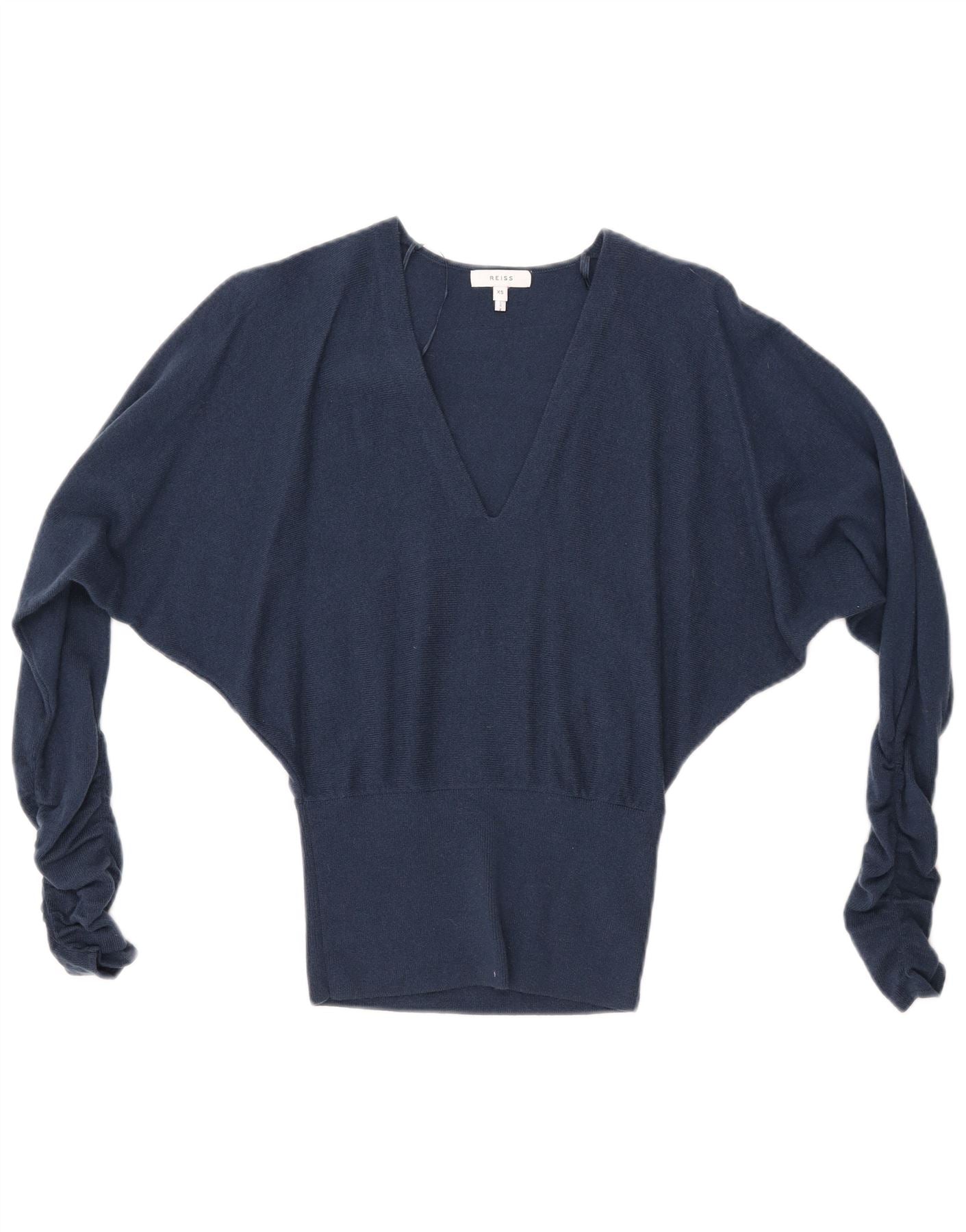 Женский джемпер REISS с V-образным вырезом и крыльями летучей мыши UK 6 XS Темно-синий, шерсть