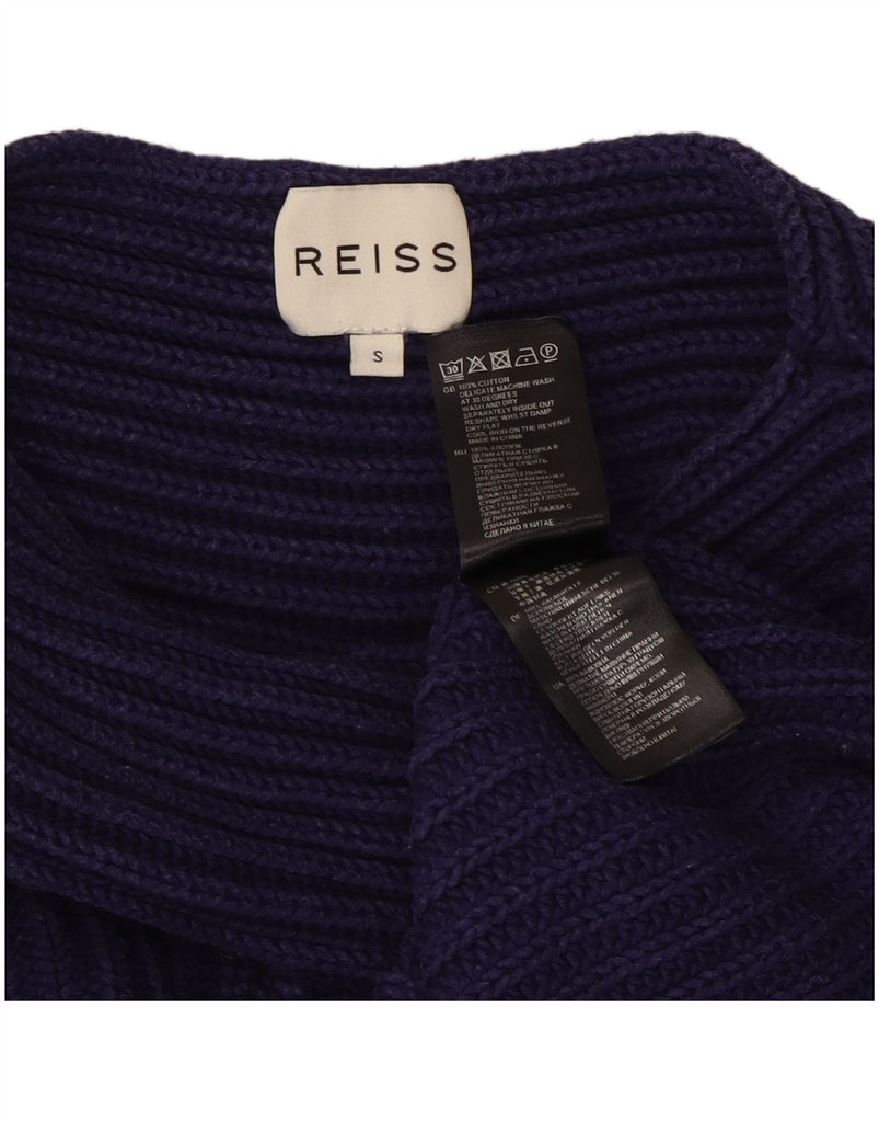 REISS Womens Boat Neck Jumper Sweater UK 10 Small Navy Blue Cotton