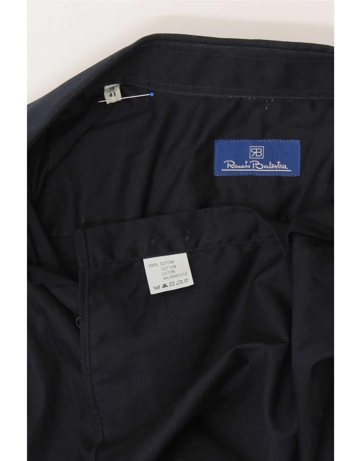 RENATO BALESTRA Мужская рубашка, размер 16 41, большая, темно-синяя, хлопковая