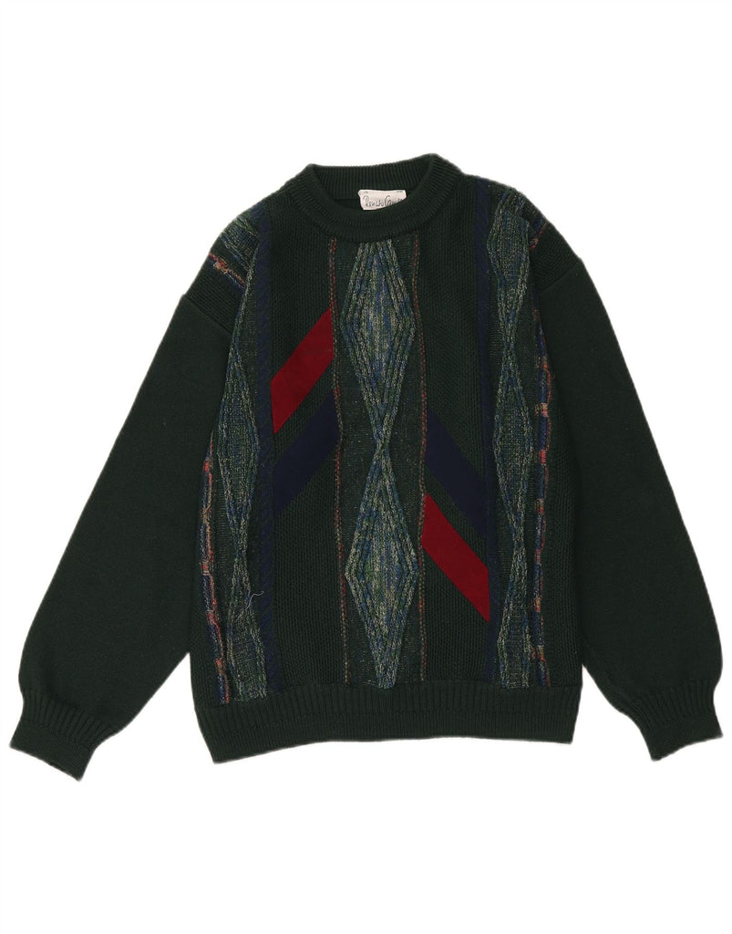 RENATO CAVALLI Mens Crew Neck Jumper Sweater Medium Green Argyle/Diamond